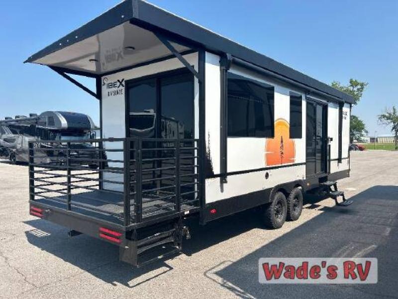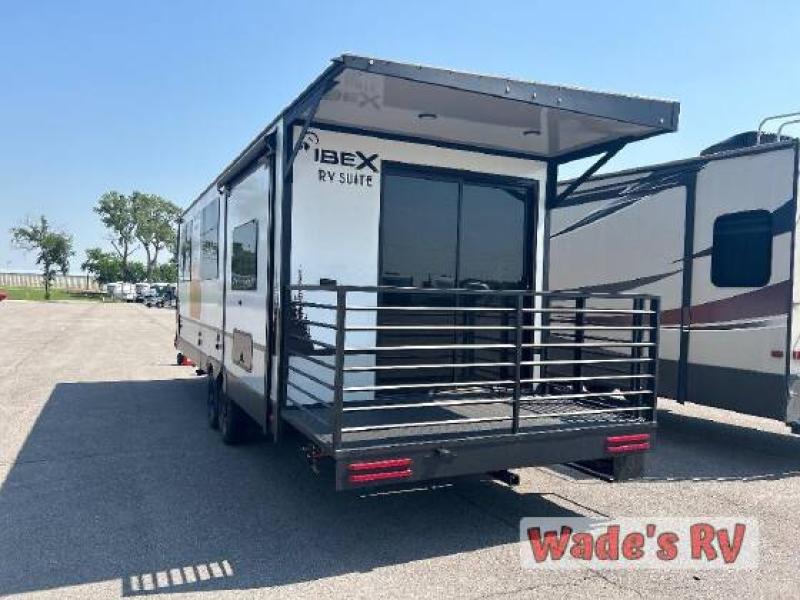 If you're looking for a more home-like travel trailer, the IBEX RV Suite by Forest River may just be perfect for you! The minute you step through the sliding glass patio doors, you will be met with luxurious features. There is a premium Bluetooth audio system in each model, plus a luxury lavatory, solid surface kitchen countertops, and a king suite. You will love the inviting dimmable sunset lighting, and the central vacuum system will make it easier than ever to clean up. Each model is constructed with a gel coat fiberglass and durable Azdel, and the upgraded sidewall insulation will help extend your camping season. All-terrain tires also come standard to make towing easier, and the sleek tinted frameless windows provide more open views!