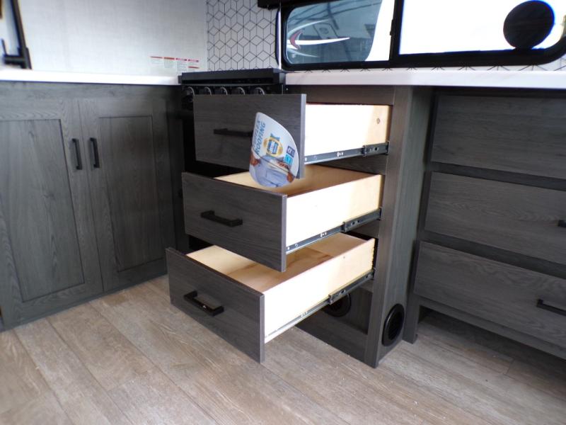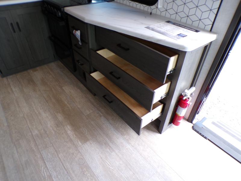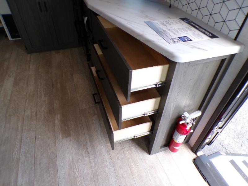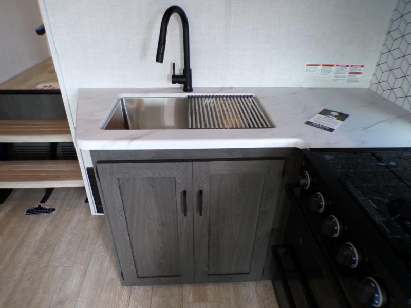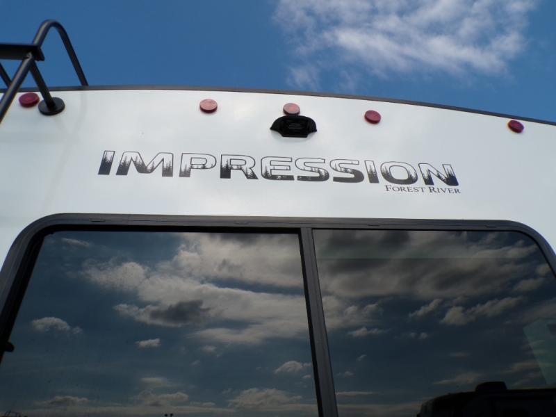 With any Impression mid-profile fifth wheel by Forest River, the focus of the design is comfort and value, built with quality craftsmanship and attention to customer's desires in each Impression! The exterior includes upgraded E-rated Goodyear Endurance tires made in the U.S.A., custom exterior graphics package, and One Touch automatic leveling system for easy setup. There is also an enclosed docking station and a gel coat fiberglass front cap with an automotive windshield with LED lights for style and beautiful views. The fully heated and enclosed AccessiBelly has removable underbelly panels and offers four seasons of travel. The interior has oversized opening windows in the living area for more natural lighting and good air flow, a stainless steel single bowl sink with high rise faucet with a pulldown sprayer to easily clean the dishes, and a porcelain foot flush toilet to mention a few comforts and conveniences.