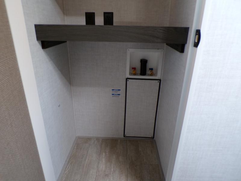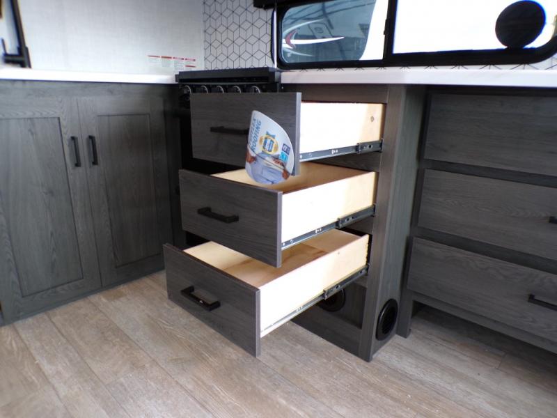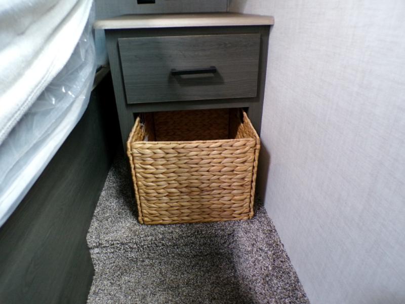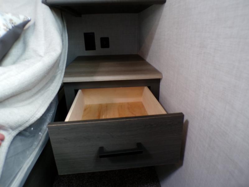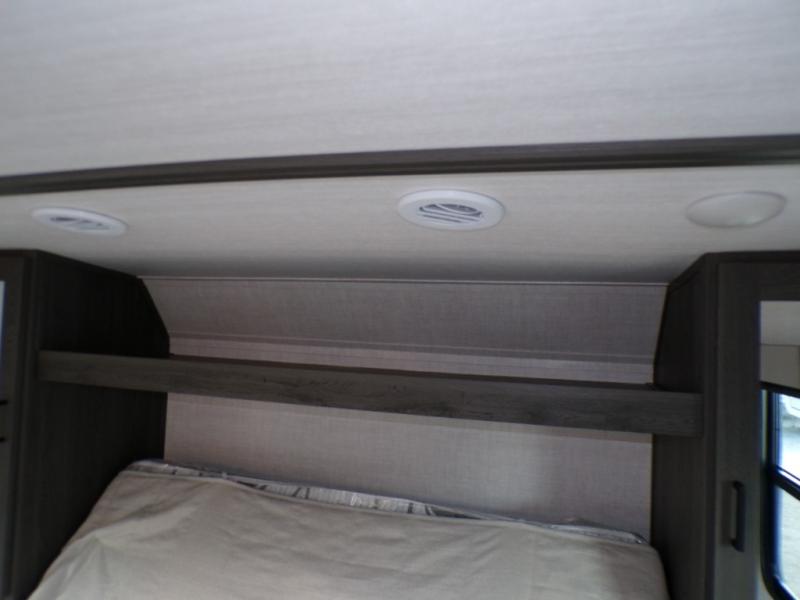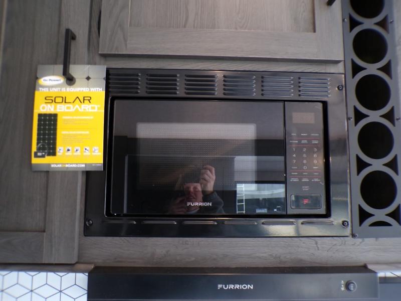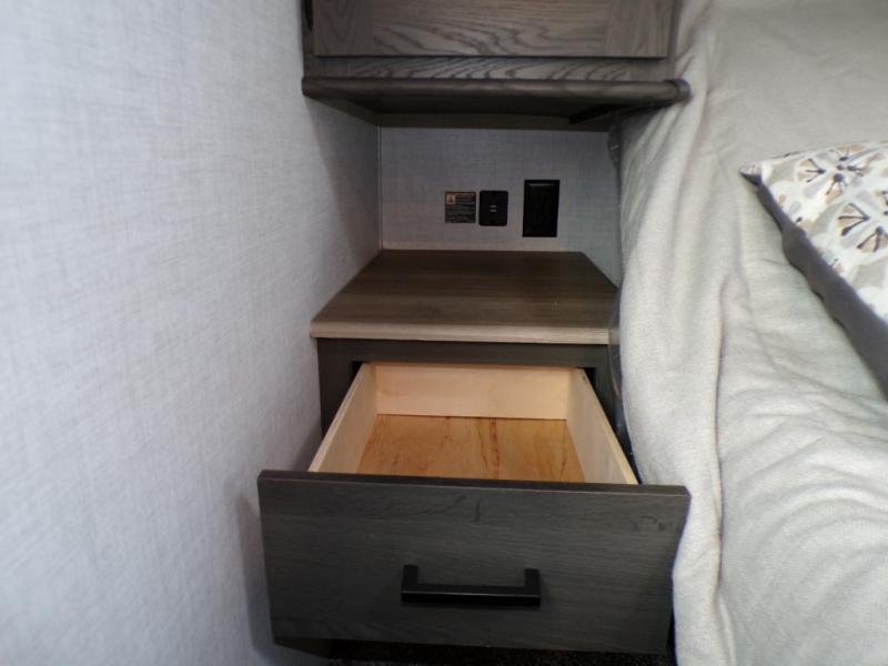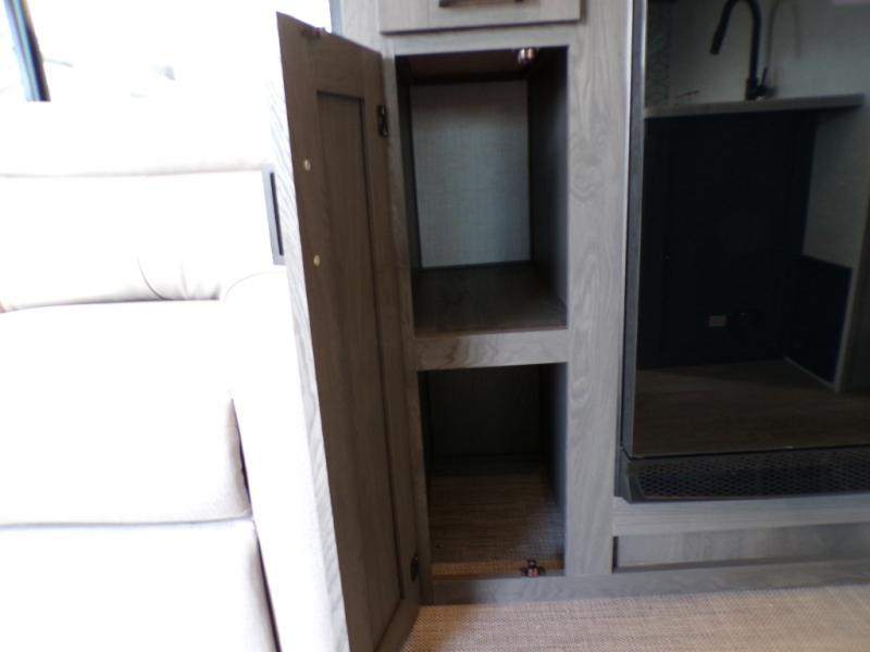 Four or six can travel together in this Impression fifth wheel comfortably featuring a single slide in the open concept living/kitchen area. Along the rear wall of the unit, you will find a 70" x 40" u-shaped dinette which is perfect for gathering around to dine and play games. This can also be converted for added sleeping space if needed. The 68" tri-fold sofa adjacent is found within the roadside slide that also features a pantry and 12 volt refrigerator, which is handy for all of your snacks and perishables. Opposite, an entertainment center with 40" TV that is easily viewable from the sofa or dinette. The kitchen also provides a three burner range, overhead microwave oven and sink, along with plenty of overhead cabinets for storage. Head up to the bath and front private bedroom where you will start or end your days with a nice walk-in shower including a skylight for more headroom and natural lighting. The private bedroom features a queen bed for a comfortable nights rest, dual bedside wardrobes and nightstands, as well as a wardrobe that has been prepped for a washer and dryer if you choose to add that convenience as well. On the outside, you will find an unobstructed pass-through compartment for your outdoor gear, a 17' awning for added outdoor living space, and a docking station with a Shurflow water pressure regulator, and more.