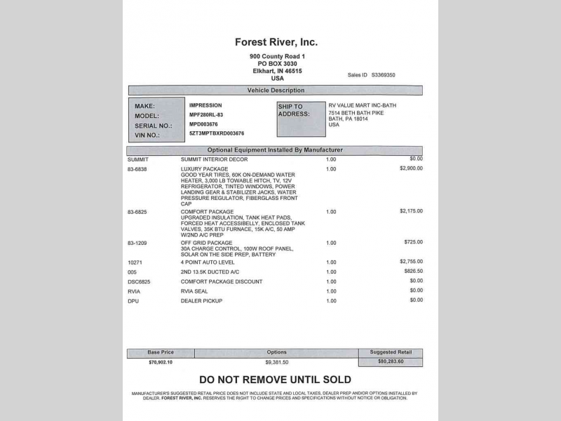 New 2024 Forest River RV Impression 280RL Fifth Wheel