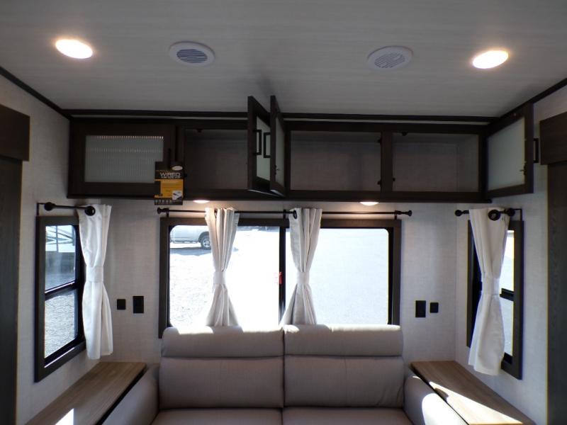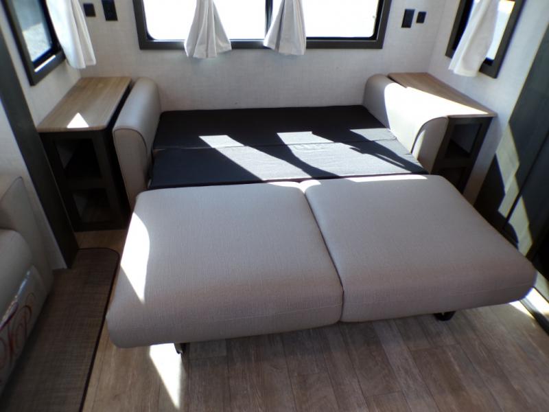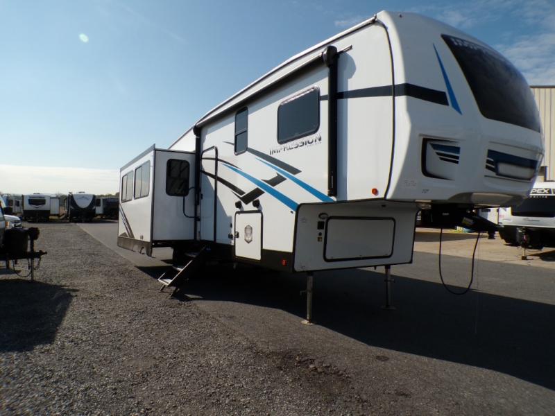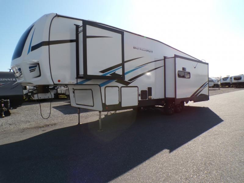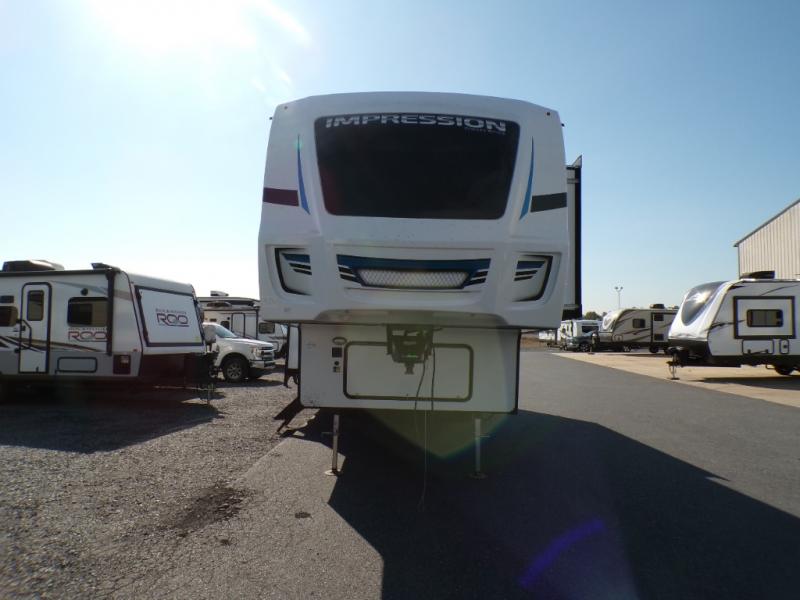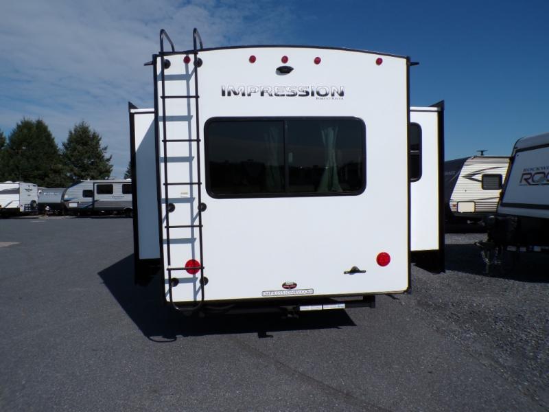 With any Impression mid-profile fifth wheel by Forest River, the focus of the design is comfort and value, built with quality craftsmanship and attention to customer's desires in each Impression! The exterior includes upgraded E-rated Goodyear Endurance tires made in the U.S.A., custom exterior graphics package, and One Touch automatic leveling system for easy setup. There is also an enclosed docking station and a gel coat fiberglass front cap with an automotive windshield with LED lights for style and beautiful views. The fully heated and enclosed AccessiBelly has removable underbelly panels and offers four seasons of travel. The interior has oversized opening windows in the living area for more natural lighting and good air flow, a stainless steel single bowl sink with high rise faucet with a pulldown sprayer to easily clean the dishes, and a porcelain foot flush toilet to mention a few comforts and conveniences.