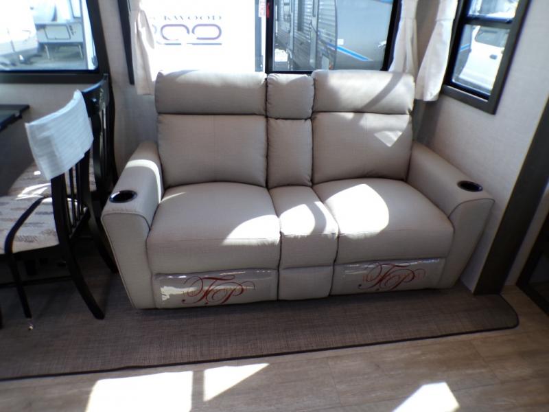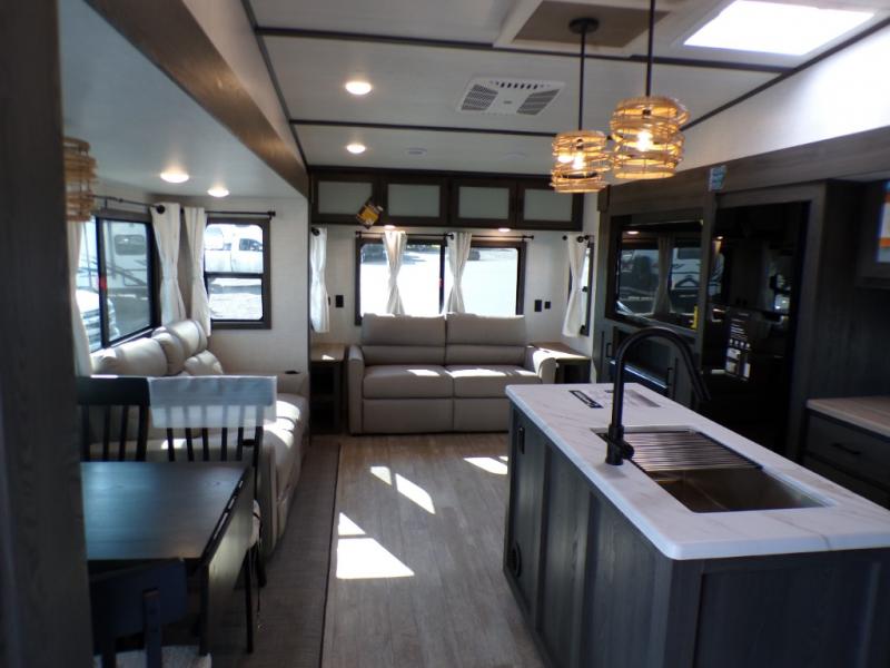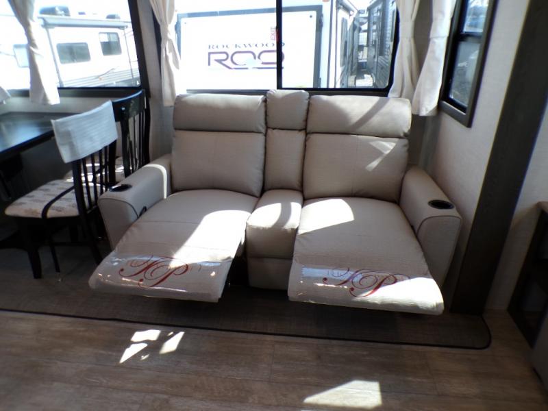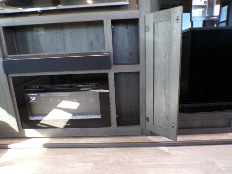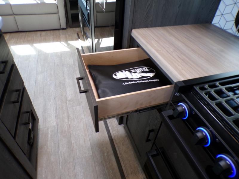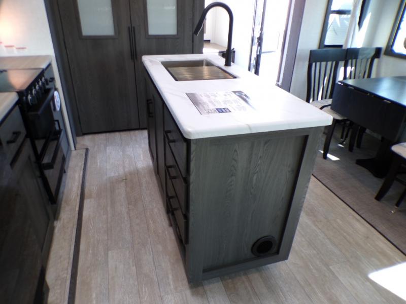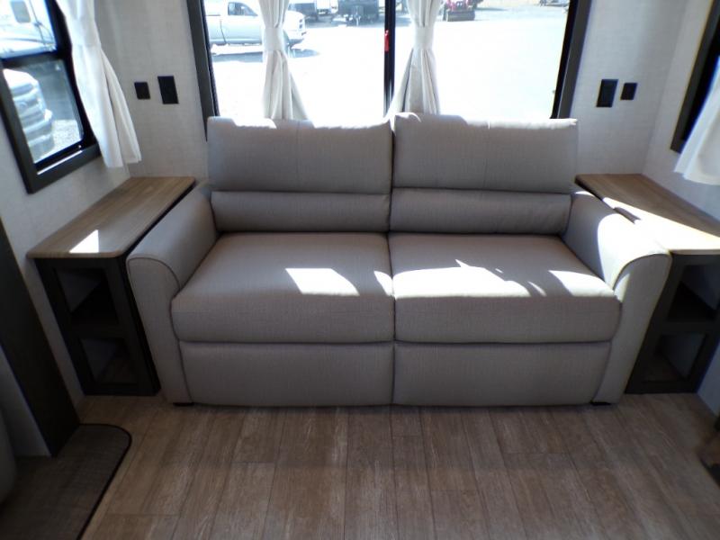 With any Impression mid-profile fifth wheel by Forest River, the focus of the design is comfort and value, built with quality craftsmanship and attention to customer's desires in each Impression! The exterior includes upgraded E-rated Goodyear Endurance tires made in the U.S.A., custom exterior graphics package, and One Touch automatic leveling system for easy setup. There is also an enclosed docking station and a gel coat fiberglass front cap with an automotive windshield with LED lights for style and beautiful views. The fully heated and enclosed AccessiBelly has removable underbelly panels and offers four seasons of travel. The interior has oversized opening windows in the living area for more natural lighting and good air flow, a stainless steel single bowl sink with high rise faucet with a pulldown sprayer to easily clean the dishes, and a porcelain foot flush toilet to mention a few comforts and conveniences.