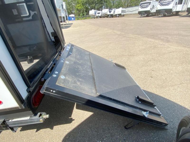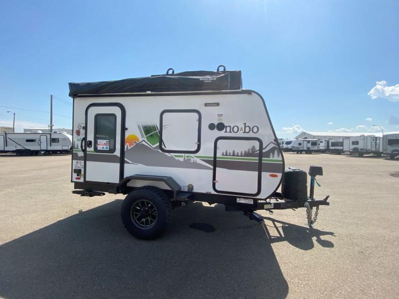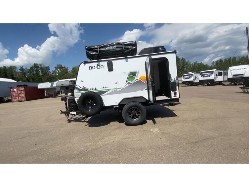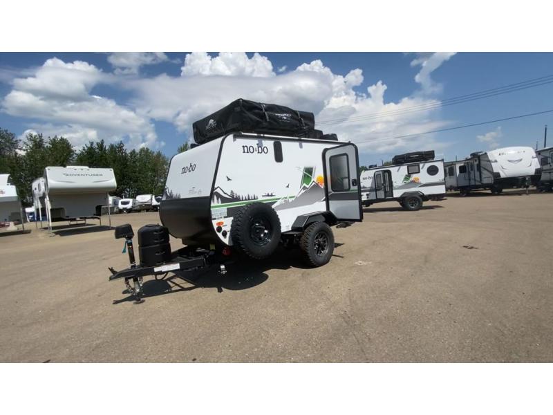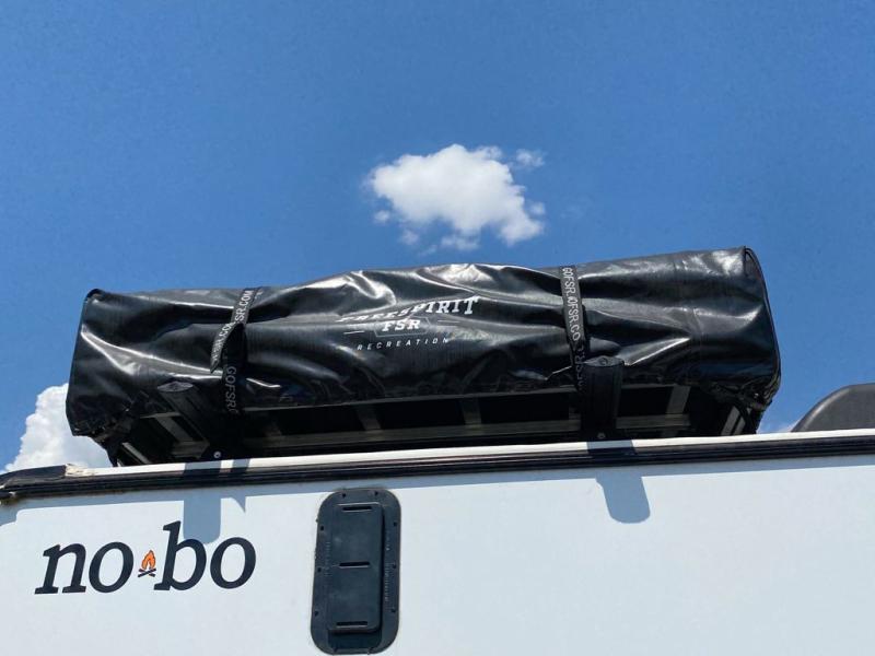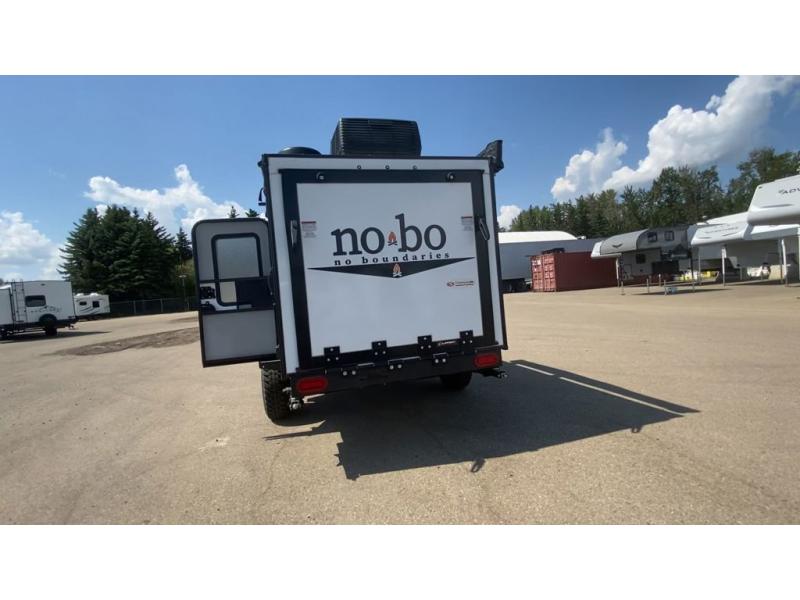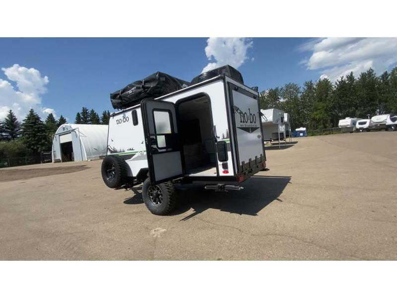 Use this No Boundaries toy hauler to get away for a weekend with your favorite toys! There is a ramp door to help you load up your four-wheeler, and you can also store more gear with the Rhino Rack RVT track. You have a front sleeping space to rest on inside and the optional NoBo Nest Rooftop Tent adds more sleeping. With the exterior cooktop/refrigerator, you can prepare your delicious meals. There are two entry doors on either side of this trailer, and when you add the ramp door to that count, you get an amazing amount of accessibility.