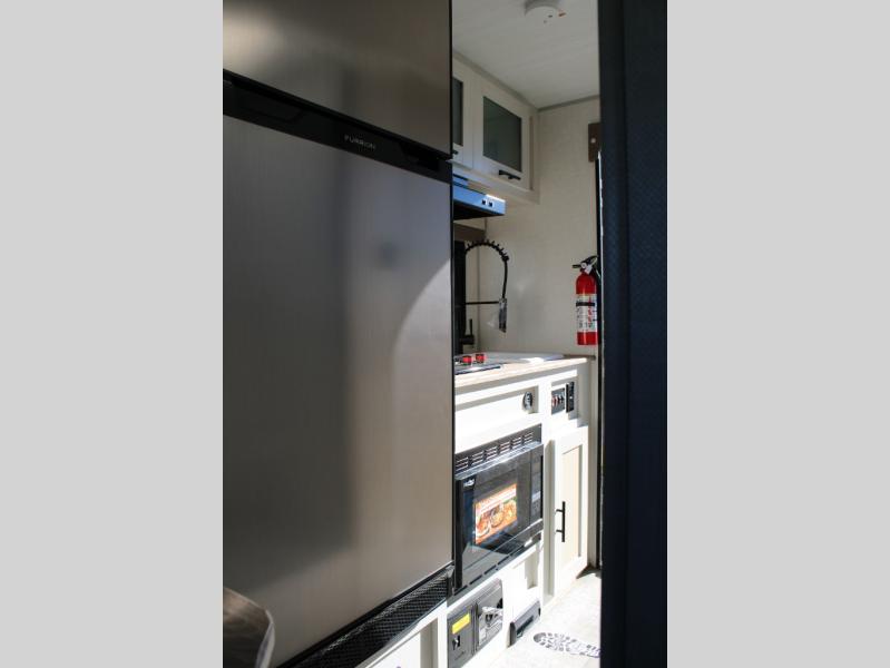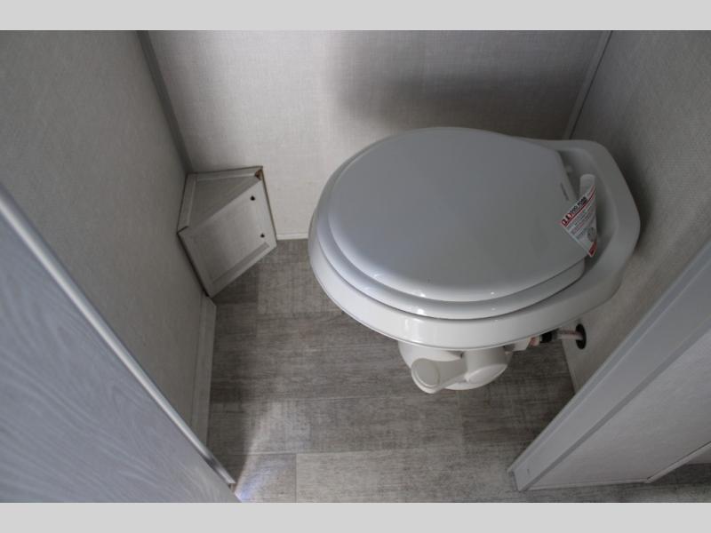 This is the perfect couples unit that features everything that you need to enjoy traveling and exploring yet keeping your tow length and weight down. The unique rear entry makes this unit easy to access, and just inside the rear door there is a private toilet area for quick access when you are outside and you need the bathroom. A front queen bed that is 60" x 74" provides a great night's rest, and can easily convert to a booth dinette when needed for inside seating and meals. The two burner cooktop, sink, and refrigerator allow you to make easy camp meals inside if you'd like.