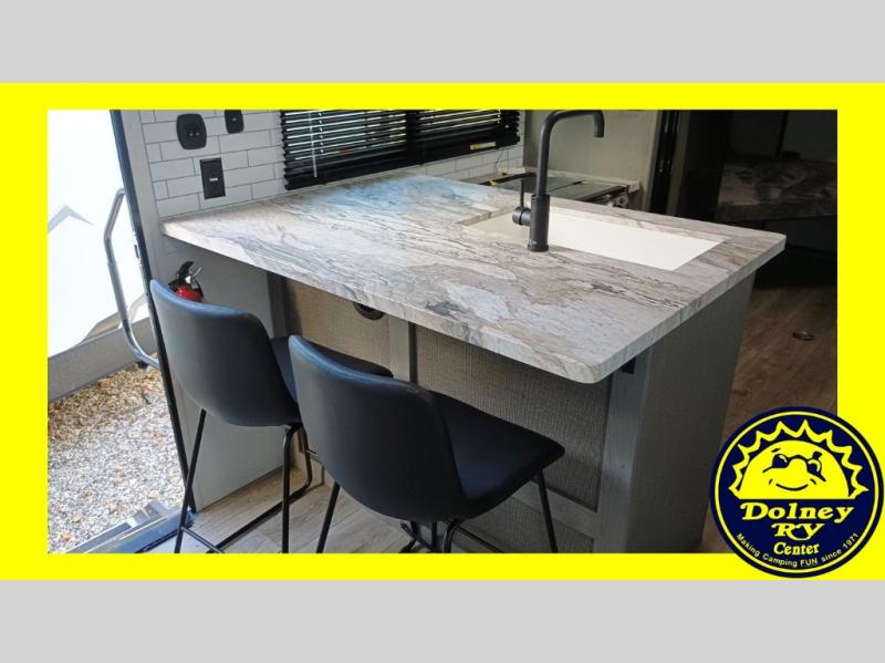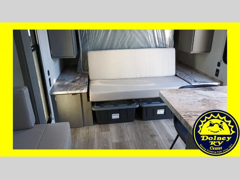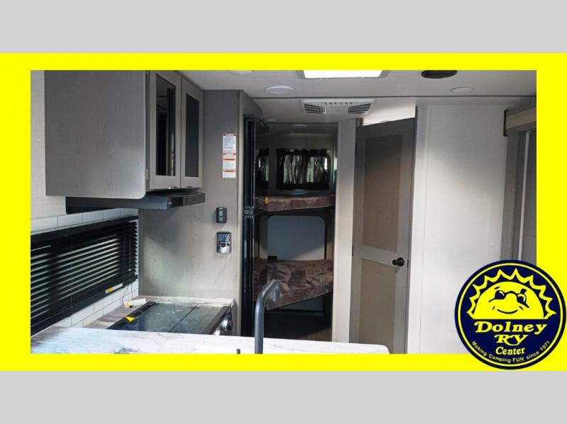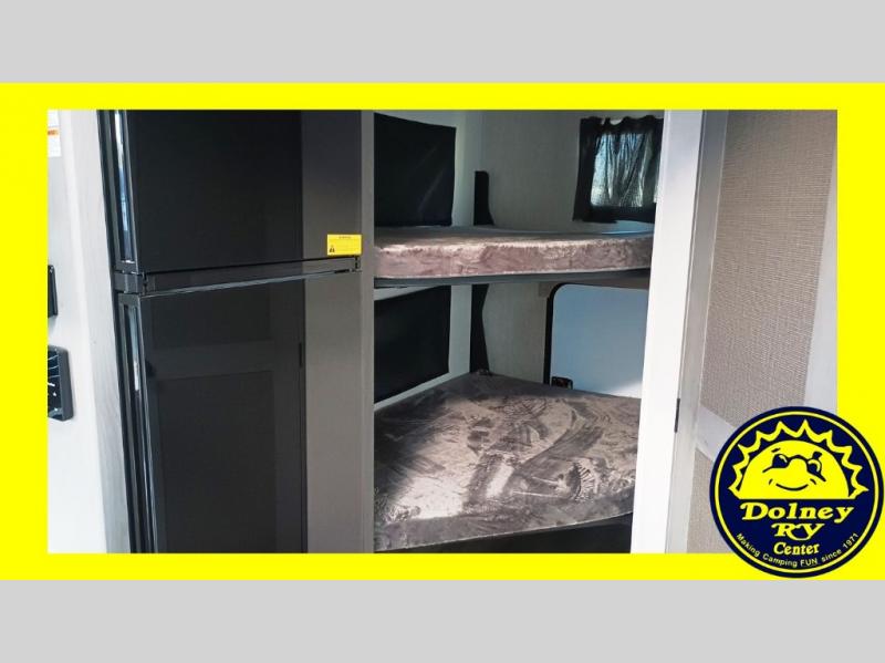 It will be so easy to fall in love this with this travel trailer for eight with its double-size bunks, full bath, and versatile Murphy bed! Whether you're hiking for the day or just relaxing at the u-shaped dinette, you are sure to enjoy every camping trip. The chef of your group will love the upgraded appliance package with an oven, plus there is a dual swinging 12V refrigerator for perishables and a large pantry for snacks within the roadside slide! Your guests can sit at the U-shaped dinette or sofa while dinner is being made, and the kitchen skylight will provide more lighting to your space.