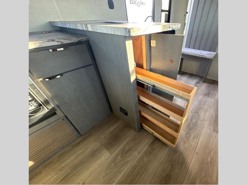 Whatever journey you choose to take, the Forest River Ozark travel trailer or toy hauler will be well prepared to make that journey the best it can be! You'll have a full-length power awning with adjustable legs and LED lights to enhance your evenings spent outside. The friction-hinge entry door won't slam against the side of your trailer as soon as you open it, and the double step plus XL folding grab assist handle will create an easy way to enter your trailer. The class-leading window package will make sure that all of your scenic views are easily seen from the inside of your trailer, and the durable one-piece linoleum flooring ensures that cleaning won't be burdensome.