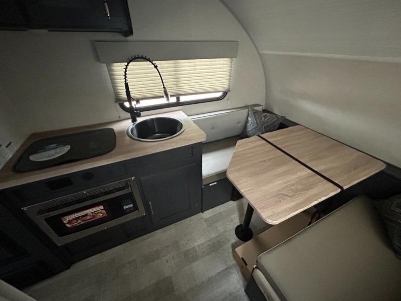 This R-Pod travel trailer by Forest River is perfect for weekend trips or month-long vacations to enjoy the great outdoors with conveniences of home. You can easily sleep three people with a rear RV queen bed and a front dinette folded down for the little ones. This unit also includes a two-burner cooktop and convection microwave to make meals inside. You will also find a convenient wet bath where you can easily get ready for bed each night.