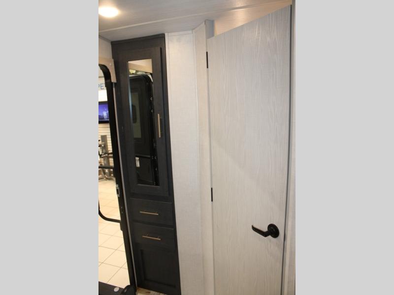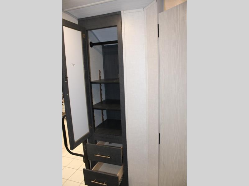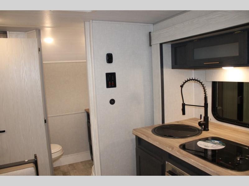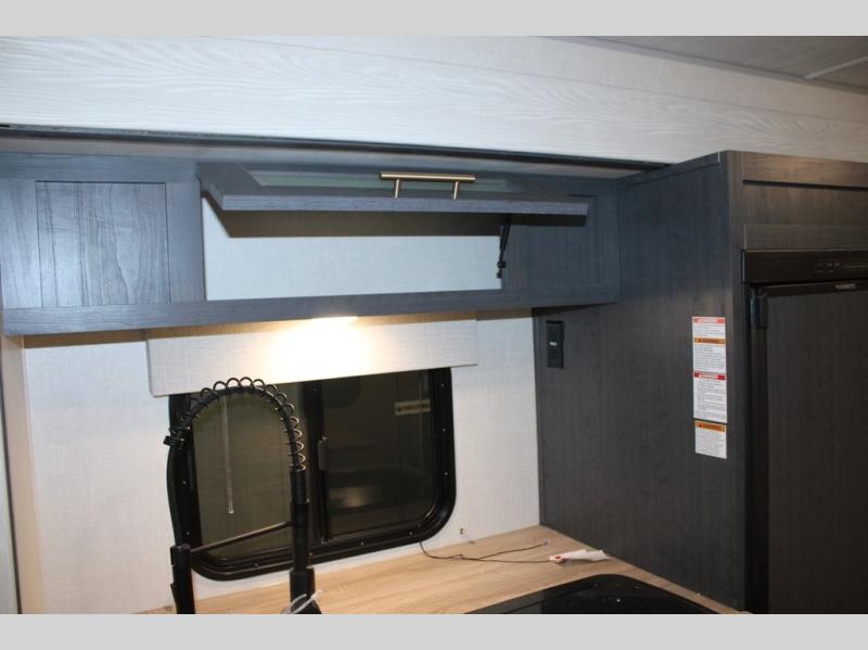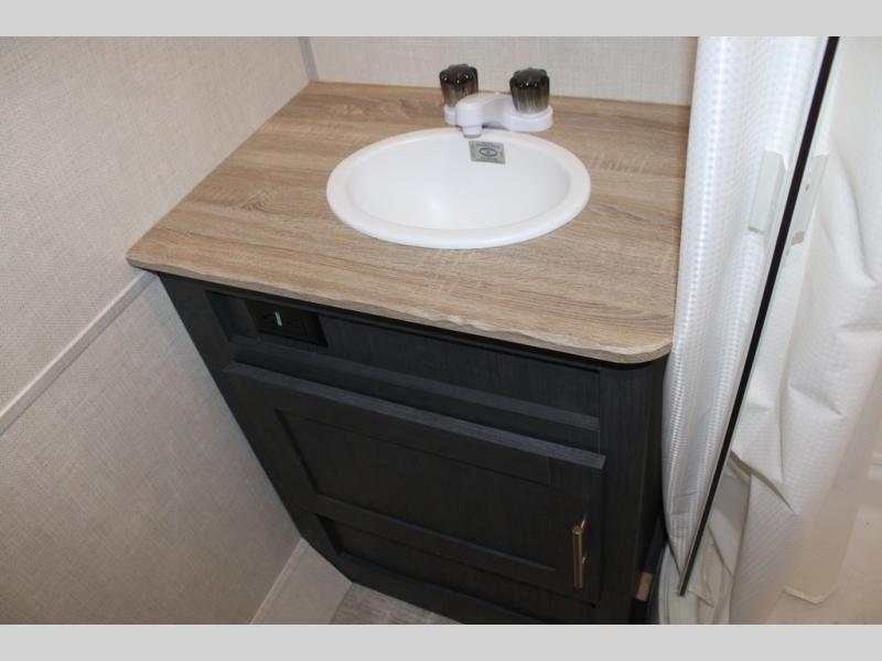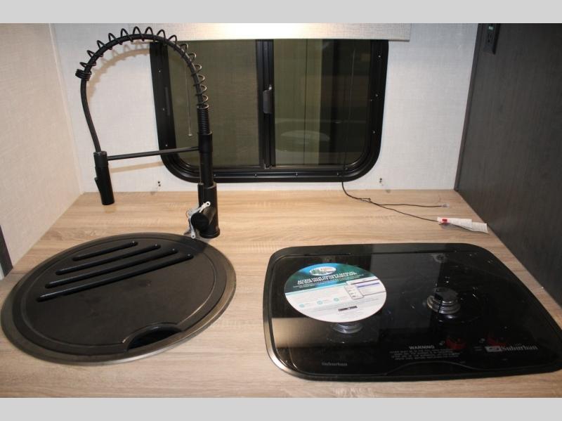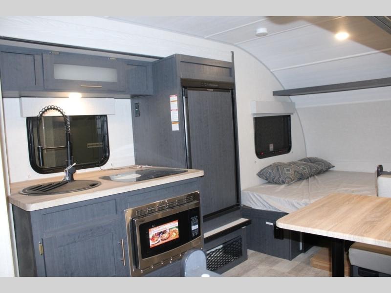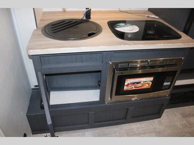With any R-Pod Classic travel trailer by Forest River, you will enjoy at home-comforts and lightweight towing. There are magnetic door catches that will easily keep the door open when you're packing hiking gear or bringing in your luggage. Each model includes 30 Amp service with a detachable power cord, a 20 lb. propane tank with a cover, and a high efficiency roof-mounted air conditioner that will keep you cool during the summer camping months. Inside, you'll find a two burner recessed cooktop with a flush mount glass cover, a convection microwave, and new Cosmetic Graphite interior for a modern look you will love.
