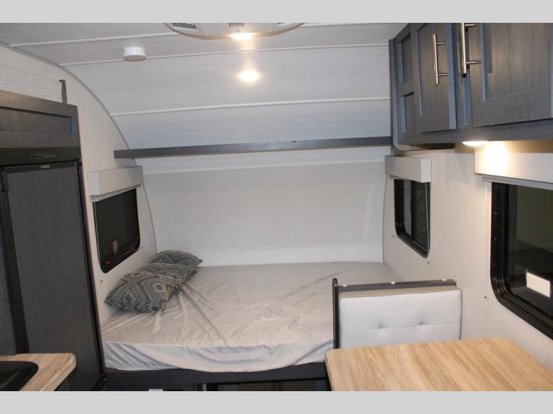 Get ready to travel just about anywhere with this lightweight R-Pod travel trailer! This model is ideal for any couple. There is sleeping space on the front RV queen bed, and the 24" x 75" booth dinette can easily convert into a sleeping spot for an additional camper. The slide out helps open up the floor space, plus you will find all of the kitchen amenities here. The spacious full bath has plenty of room to easily get ready for any adventure that lies ahead, and you will also enjoy all of the exterior storage for all of your outdoor camping gear.