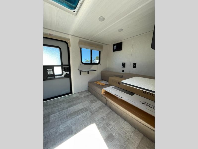 With any R-Pod Classic travel trailer by Forest River, you will enjoy at home-comforts and lightweight towing. There are magnetic door catches that will easily keep the door open when you're packing hiking gear or bringing in your luggage. Each model includes 30 Amp service with a detachable power cord, a 20 lb. propane tank with a cover, and a high efficiency roof-mounted air conditioner that will keep you cool during the summer camping months. Inside, you'll find a two burner recessed cooktop with a flush mount glass cover, a convection microwave, and new Cosmetic Graphite interior for a modern look you will love.