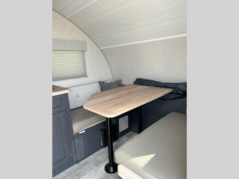 This R-Pod travel trailer by Forest River is perfect for weekend trips or month-long vacations to enjoy the great outdoors with conveniences of home. You can easily sleep three people with a rear RV queen bed and a front dinette folded down for the little ones. This unit also includes a two-burner cooktop and convection microwave to make meals inside. You will also find a convenient wet bath where you can easily get ready for bed each night.