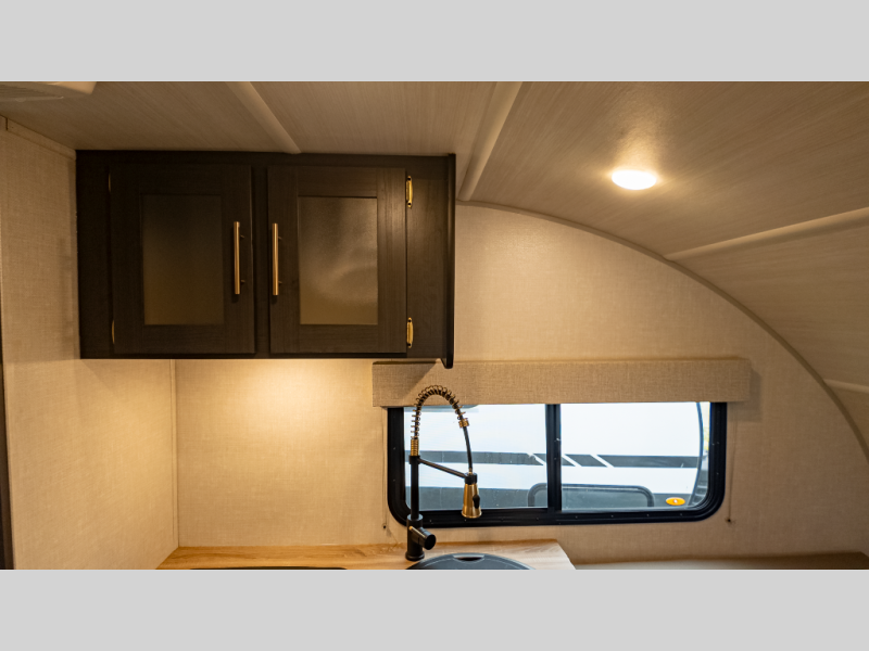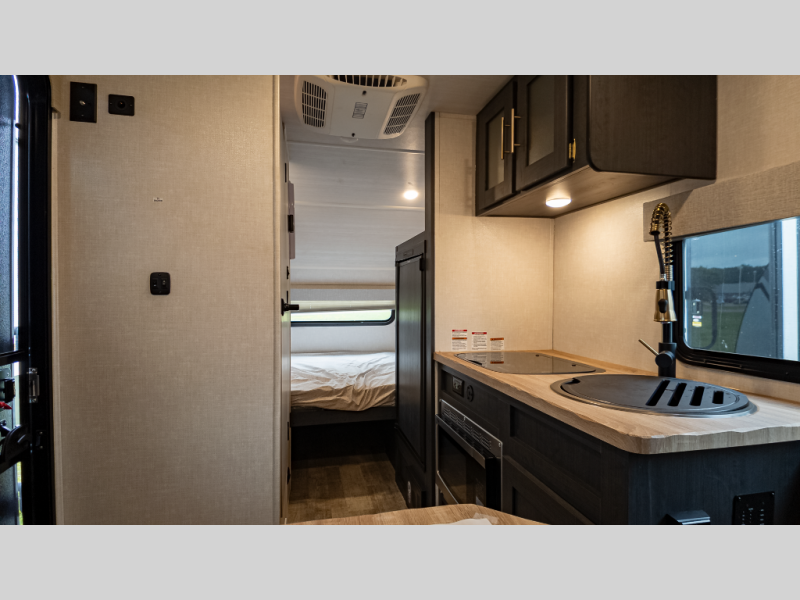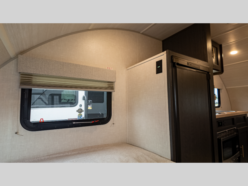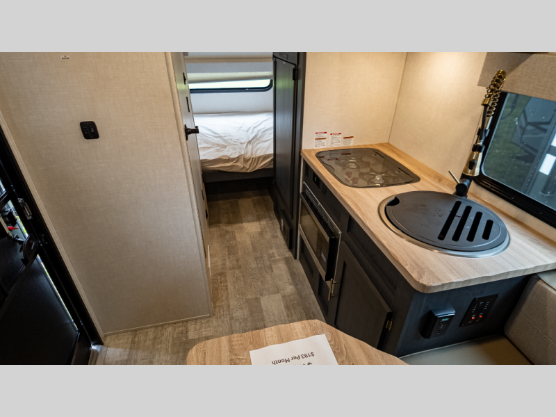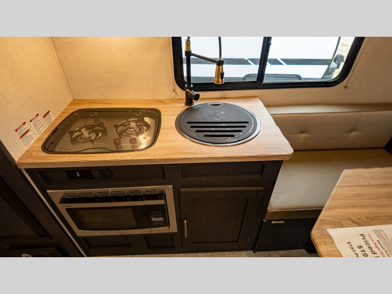 Overview: Lightweight 19 ft travel trailer with a fixed RV queen bed, booth dinette, convection galley, and a compact wet bath. Built for easy towing and quick getaways without sacrificing essentials.