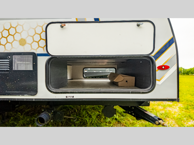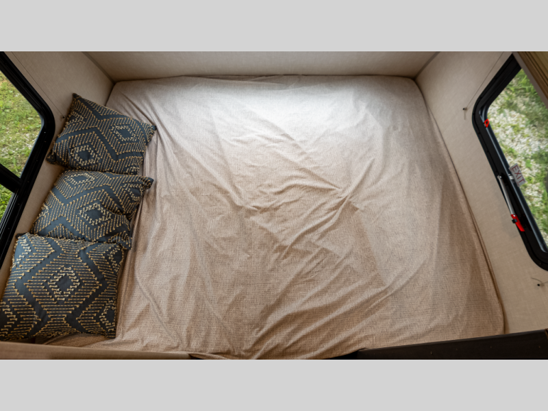 Small footprint, big freedom. Under 2,500 lb dry with real tanks and a queen bed.