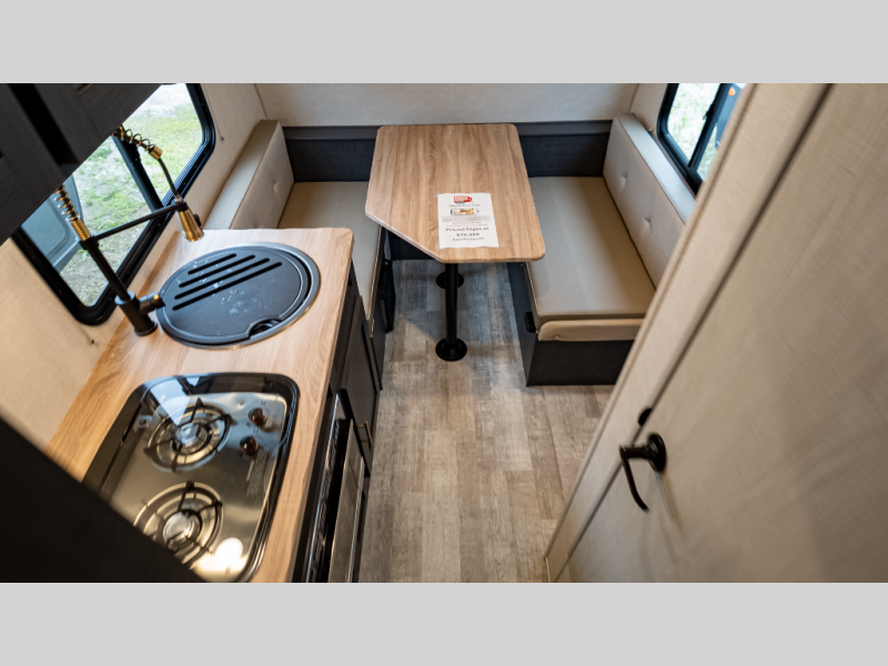 RP-171C is the classic single-room R-Pod layout that nails the basics. A fixed queen bed for real sleep, a dinette for meals and laptops, a compact wet bath, and a convection galley. It is the stress-free tow you want with the camping comfort you need.