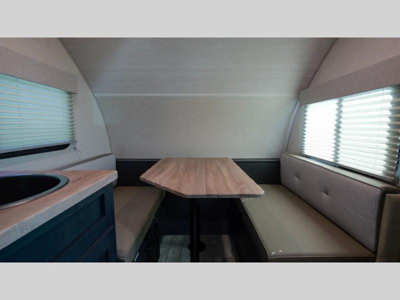 This R Pod travel trailer by Forest River is perfect for weekend trips or month-long vacations to enjoy the great outdoors with conveniences of home. You can easily sleep three people with a rear RV queen bed and a front dinette folded down for the little ones. This unit also includes a two-burner cooktop and convection microwave to make meals inside. You will also find a convenient wet bath where you can easily get ready for bed each night.