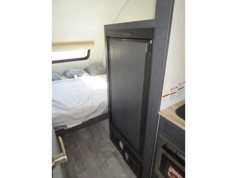 This R Pod travel trailer by Forest River is perfect for weekend trips or month-long vacations to enjoy the great outdoors with conveniences of home. You can easily sleep three people with a rear RV queen bed and a front dinette folded down for the little ones. This unit also includes a two-burner cooktop and convection microwave to make meals inside. You will also find a convenient wet bath where you can easily get ready for bed each night.