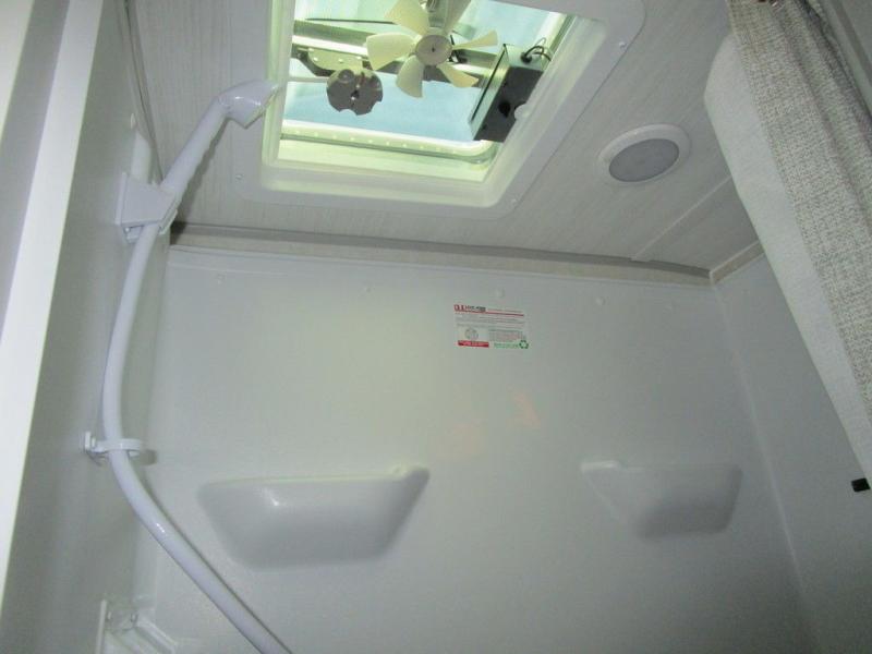 With any R Pod Classic travel trailer by Forest River, you will enjoy at home-comforts and lightweight towing. There are magnetic door catches that will easily keep the door open when you're packing hiking gear or bringing in your luggage. Each model includes 30 Amp service with a detachable power cord, a 20 lb. propane tank with a cover, and a high efficiency roof-mounted air conditioner that will keep you cool during the summer camping months. Inside, you'll find a two burner recessed cooktop with a flush mount glass cover, a convection microwave, and new Cosmetic Graphite interior for a modern look you will love.