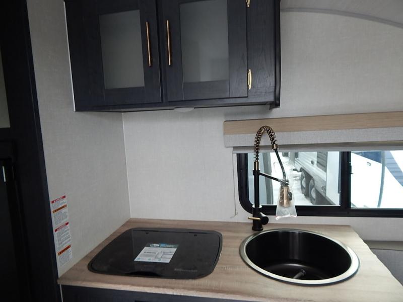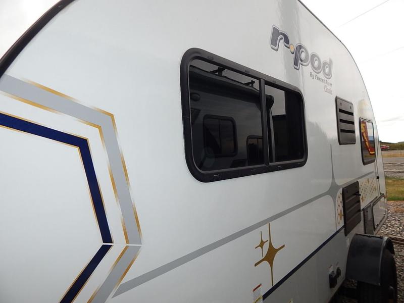 With any R Pod Classic travel trailer by Forest River, you will enjoy at home-comforts and lightweight towing. There are magnetic door catches that will easily keep the door open when you're packing hiking gear or bringing in your luggage. Each model includes 30 Amp service with a detachable power cord, a 20 lb. propane tank with a cover, and a high efficiency roof-mounted air conditioner that will keep you cool during the summer camping months. Inside, you'll find a two burner recessed cooktop with a flush mount glass cover, a convection microwave, and new Cosmetic Graphite interior for a modern look you will love.