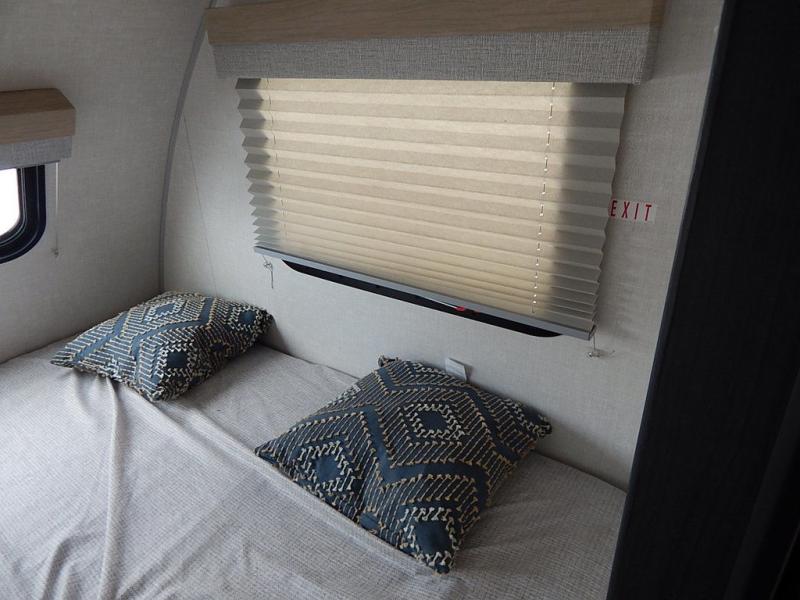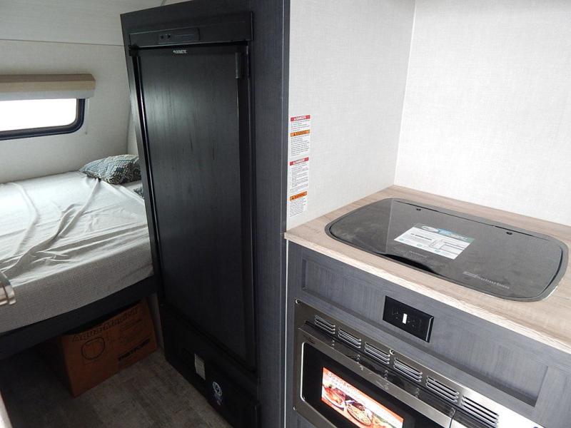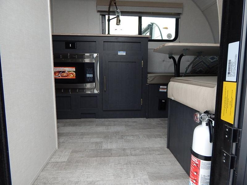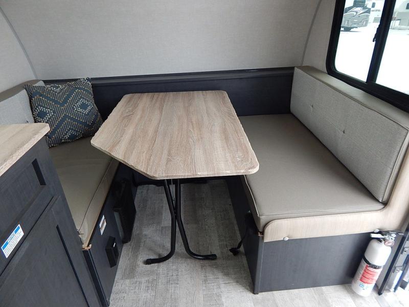 This R Pod travel trailer by Forest River is perfect for weekend trips or month-long vacations to enjoy the great outdoors with conveniences of home. You can easily sleep three people with a rear RV queen bed and a front dinette folded down for the little ones. This unit also includes a two-burner cooktop and convection microwave to make meals inside. You will also find a convenient wet bath where you can easily get ready for bed each night.