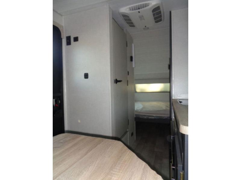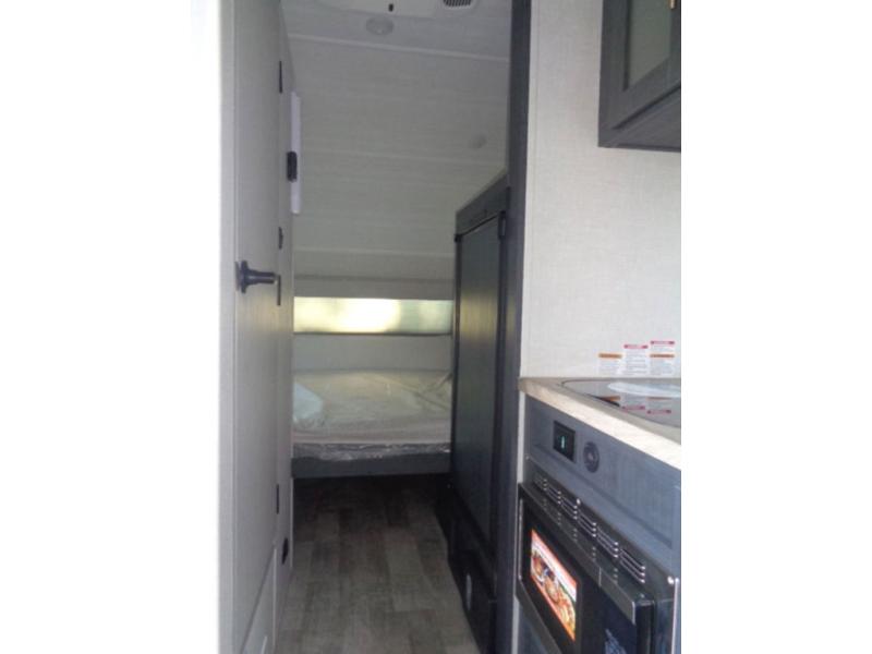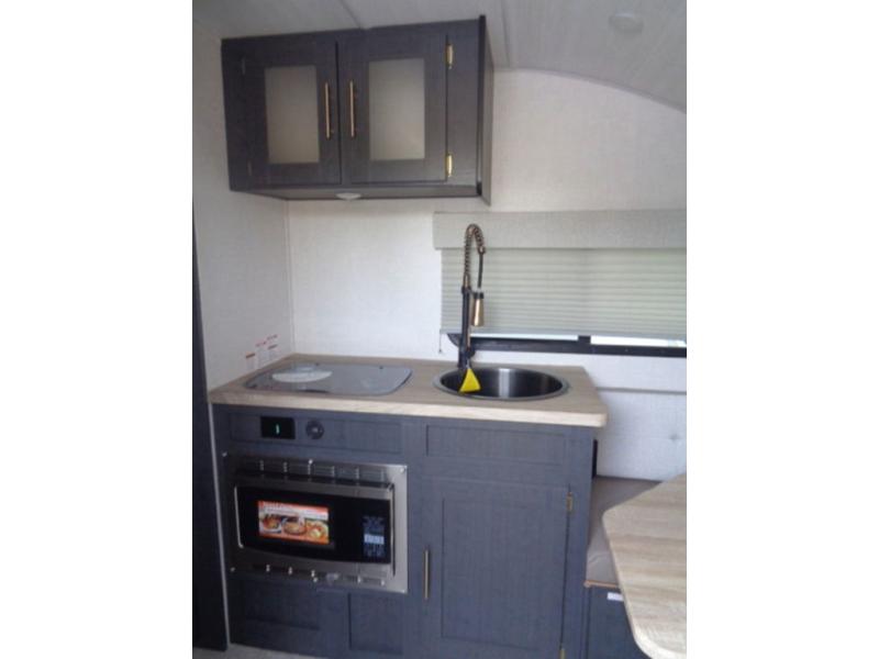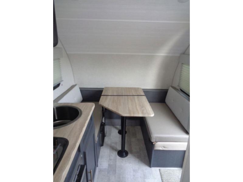 This R Pod travel trailer by Forest River is perfect for weekend trips or month-long vacations to enjoy the great outdoors with conveniences of home. You can easily sleep three people with a rear RV queen bed and a front dinette folded down for the little ones. This unit also includes a two-burner cooktop and convection microwave to make meals inside. You will also find a convenient wet bath where you can easily get ready for bed each night.