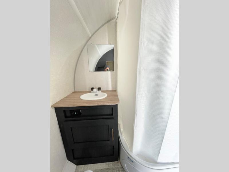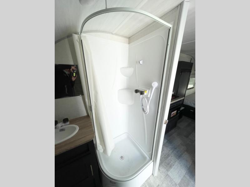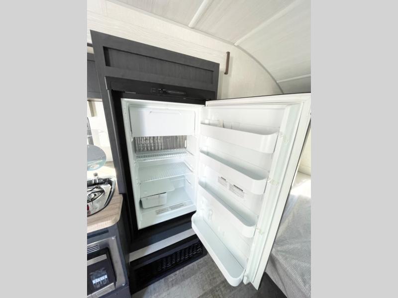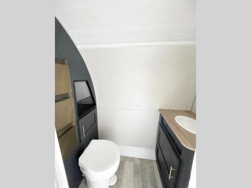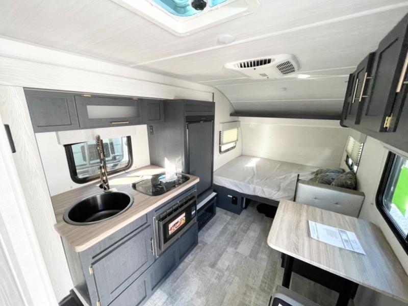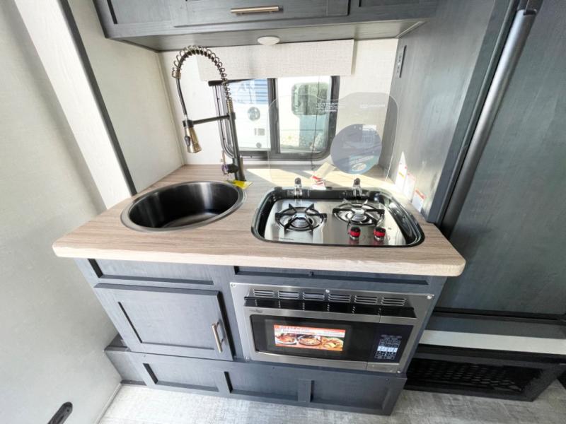 With any R Pod Classic travel trailer by Forest River, you will enjoy at home-comforts and lightweight towing. There are magnetic door catches that will easily keep the door open when you're packing hiking gear or bringing in your luggage. Each model includes 30 Amp service with a detachable power cord, a 20 lb. propane tank with a cover, and a high efficiency roof-mounted air conditioner that will keep you cool during the summer camping months. Inside, you'll find a two burner recessed cooktop with a flush mount glass cover, a convection microwave, and new Cosmetic Graphite interior for a modern look you will love.