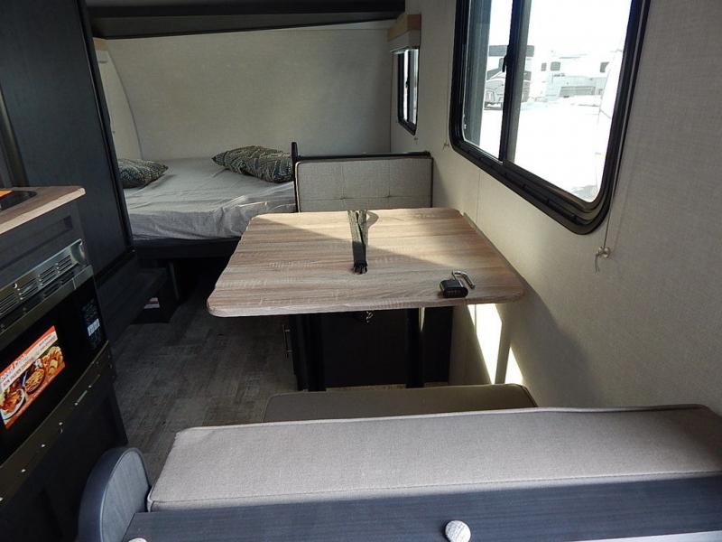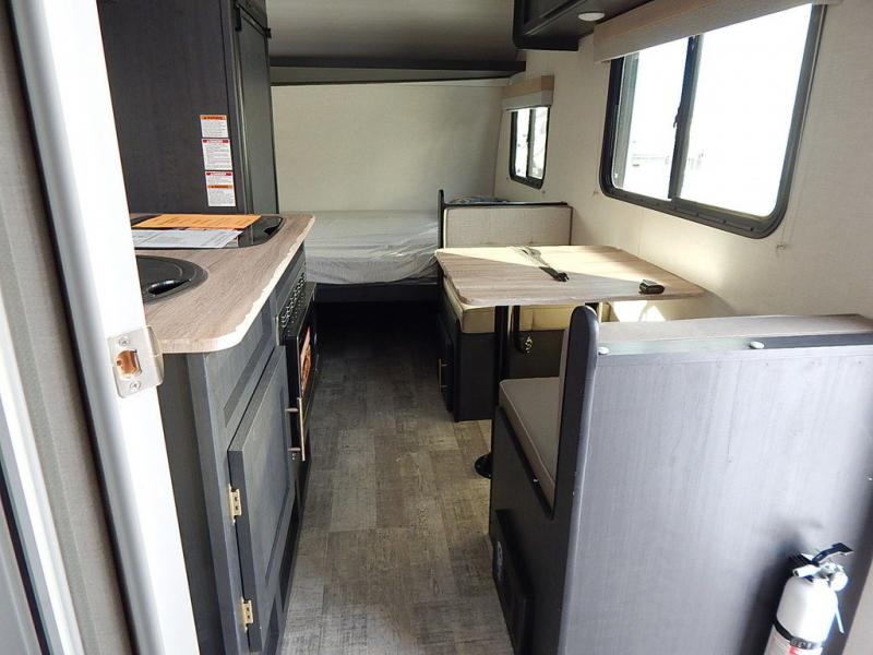 Get ready to travel just about anywhere with this lightweight R Pod travel trailer! This model is ideal for any couple. There is sleeping space on the front RV queen bed, and the 24" x 75" booth dinette can easily convert into a sleeping spot for an additional camper. The slide out helps open up the floor space, plus you will find all of the kitchen amenities here. The spacious full bath has plenty of room to easily get ready for any adventure that lies ahead, and you will also enjoy all of the exterior storage for all of your outdoor camping gear.
