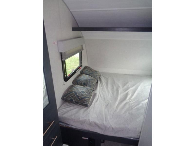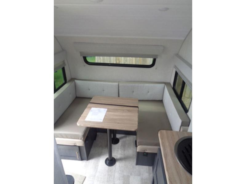 For the couple who is ready to camp anytime and anywhere, you will love how easy it is to travel with this R Pod travel trailer. You can easily set up the single slide to give you more room to move about. Within this slide, you will find the kitchen amenities, which include a two-burner cooktop, convection microwave and a refrigerator. You can enjoy your meals at the U-shaped dinette, and this furniture can double as a sleeping space, if needed. Along the front is an RV queen bed where you can rest up for another day of fun and adventure. With all of the exterior storage, you can bring along all of your necessary camping items and more!