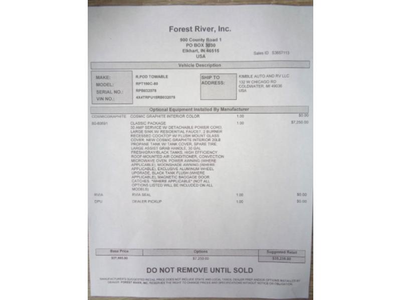 Forest River R Pod Classic travel trailer RP-190C highlights: