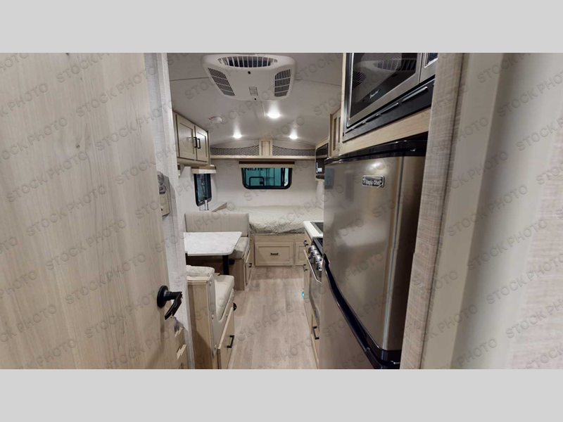 With any Rockwood GEO Pro travel trailer by Forest River you will enjoy easy towing, durable construction, and off-road capabilities with larger 15" tires and a lift kit! Package A includes a 200W solar panel and an 1800W inverter to go off-grid when you want, a tire pressure monitoring system and Key Alike door and compartment locks, plus a power awning to relax outdoors. Each model is constructed with complete composite wall construction for added strength and durability, and the torsion axle, Rubber-Ryde suspension will make towing easier than ever. Inside, you'll find sleek roller shades and hidden hinge cabinet doors, a 12V refrigerator and a microwave, plus a 20,000 BTU furnace to keep you warm during the colder camping months.