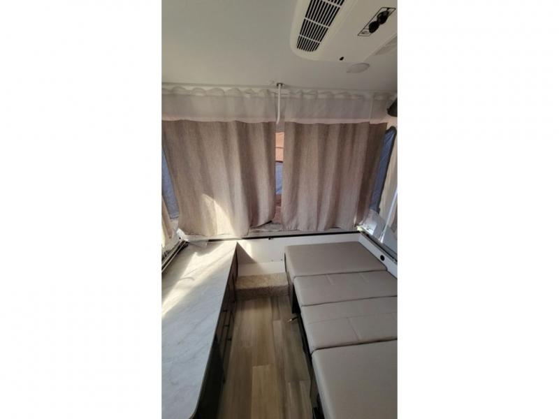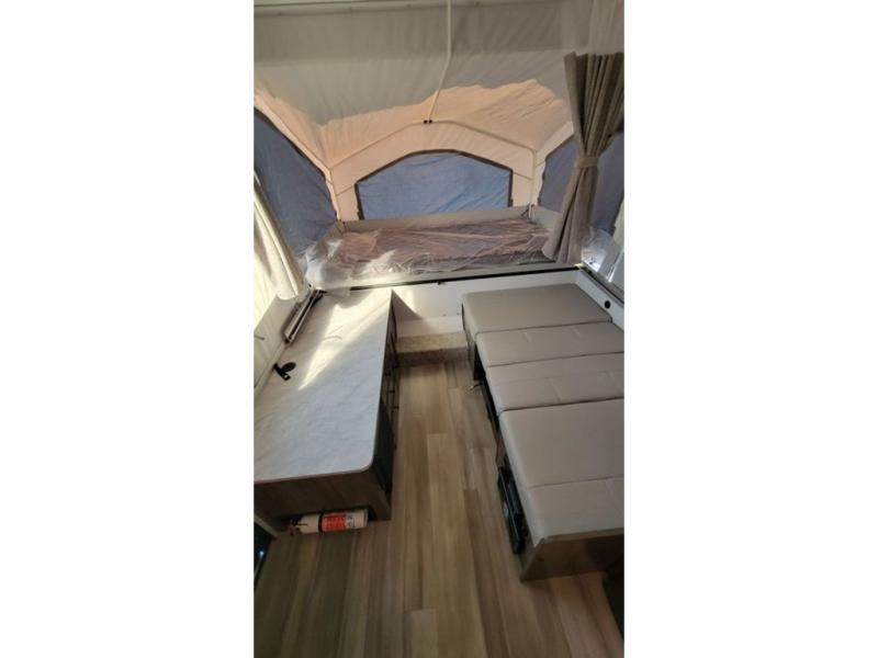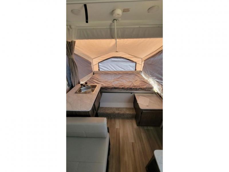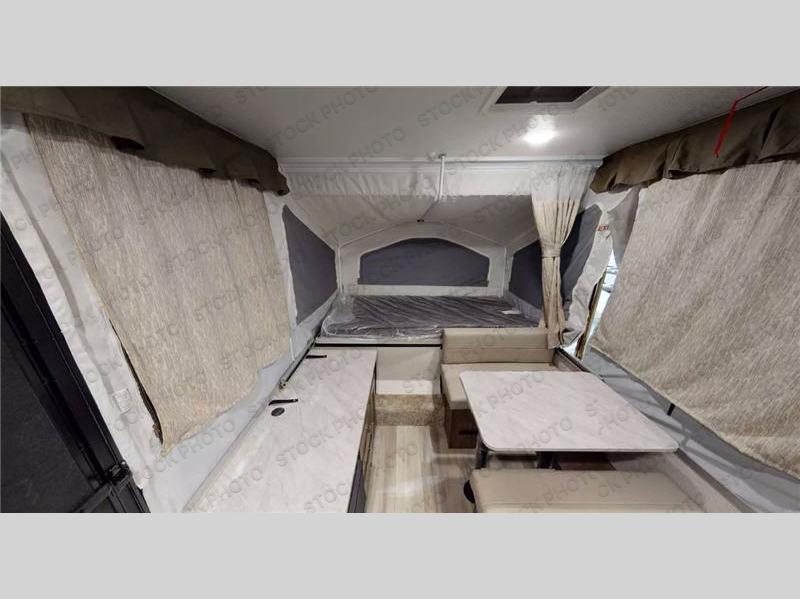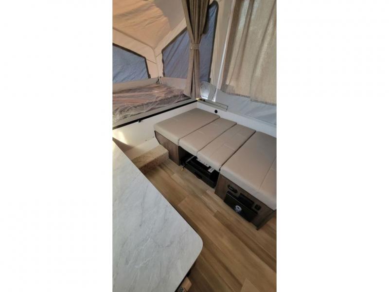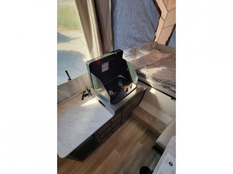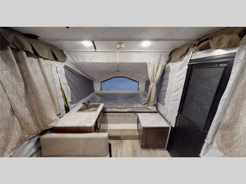 With any Limited Series folding pop-up campers by Forest River you will enjoy simple, yet convenient camping features. There are nitrogen filled tires and leaf spring axles to provide a smooth tow from home to campground, and the rear stabilizer jacks with sand pads add stability once you're all set up. There is also a one-piece screen door, an electric water pump, and a power lift system for added convenience. The interior includes LED lights, an inside/outside two burner stove, residential style cabinet doors, and a wood look floor you are sure to love.