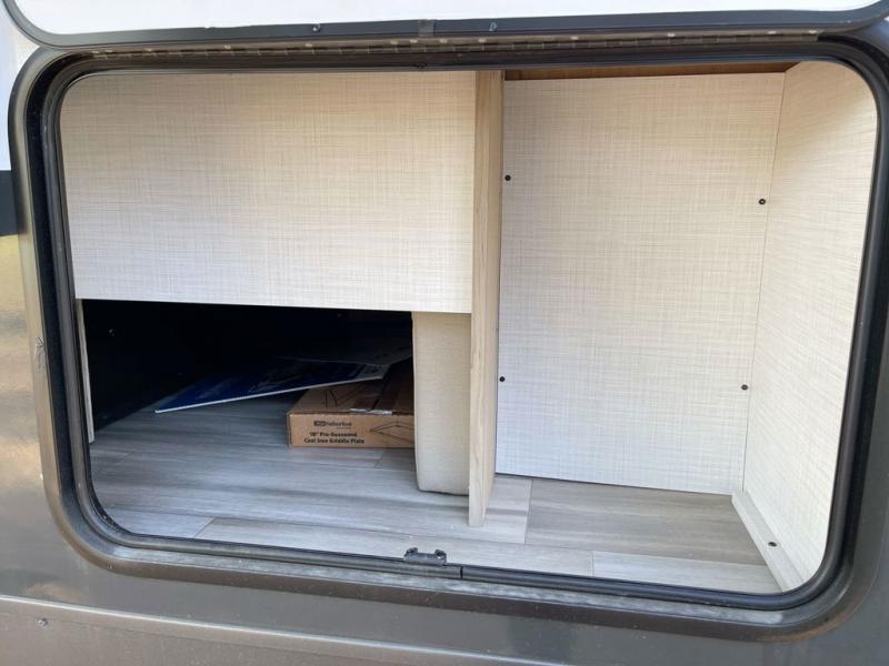 Finally, a lightweight travel trailer with double-size bunks for the kids or your guests! You'll find the versatile Murphy bed up front will be super convenient when you need more space to move around, and the 72" sofa will provide comfy seating space when the bed is put up. This model also includes a U-shaped dinette slide perfect to dine around, play games, and sleep additional guests. An LED TV in the main living area will allow you to watch your favorite shows in the evenings, or you may just find yourselves outdoors under the 18' power awning with LED lights. And check out the pass-through storage, plus additional exterior storage for your hiking gear!