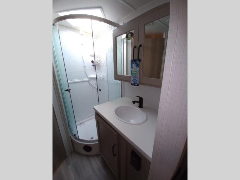 Each Rockwood Mini Lite travel trailer by Forest River is constructed with a fully laminated one-piece walkable roof, sleek frameless windows, and a six-sided full aluminum frame for strength and durability. The 12V thermostatically controlled heated tanks, plus radiant foil in the underbelly, front caps, and slide out floors will allow you to camp well into the colder months, and the 200W roof solar panel will be perfect for a little off-gridding. Each model includes solid surface kitchen countertops, solid wood cabinet doors, night roller shades, plus many more interior features. Having an Air 360+ omnidirectional antenna with wifi prep on board will allow you to get some work done if it's needed, and the power tongue jack provides hassle-free set up, so you can enjoy more time relaxing!