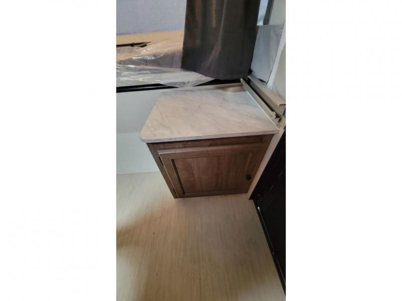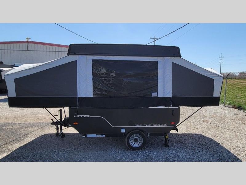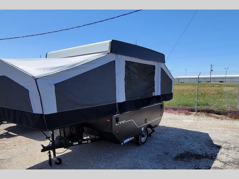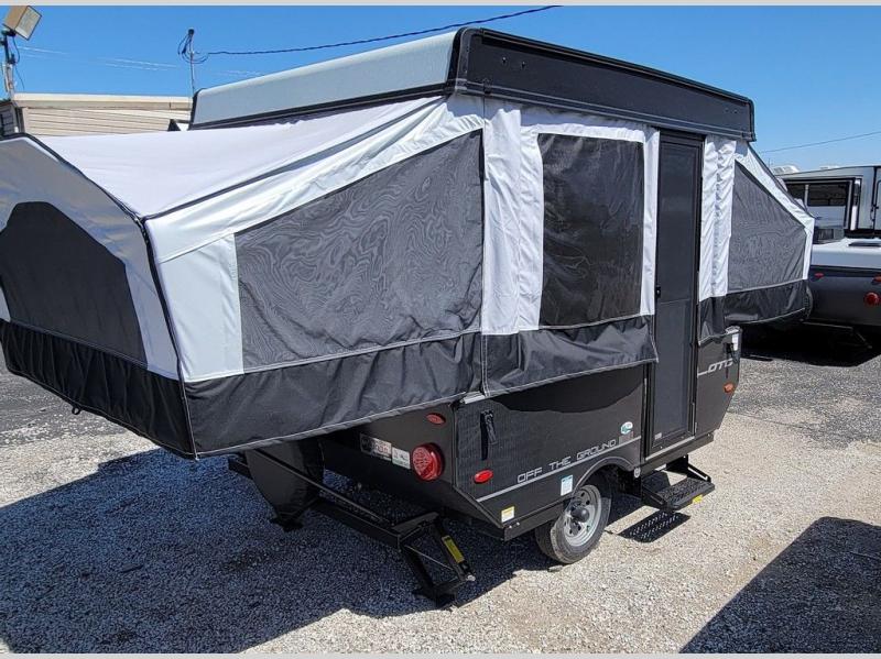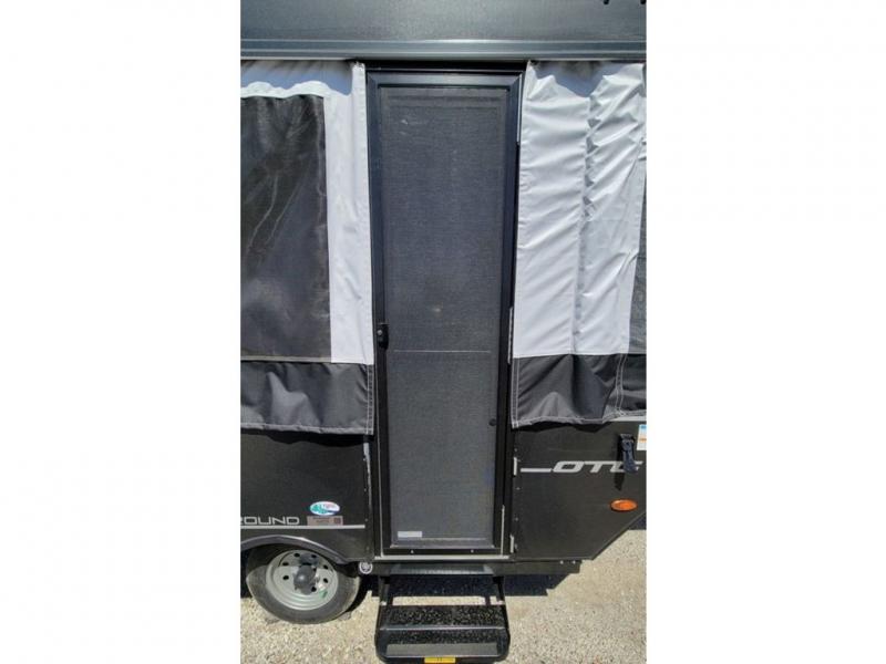With any Rockwood OTG (Off The Ground) folding pop-up camper by Forest River, you will enjoy a more simple approach to outdoor fun. If you're a regular tent camper, but are looking for a little more comfort, then take a look at these easy-to-tow models! There are electric brakes, nitrogen filled tires, and leaf spring axles that provide that easy towing, and the black exterior is sure to be eye-catching. A one-piece screen door also comes standard so you can let fresh air in, while keeping bugs out, and the LED interior lights will be an added benefit you didn't have while tent camping. Each model also includes residential style cabinet doors, wood look flooring, and an Autumn Wood interior for a more outdoorsy feel!