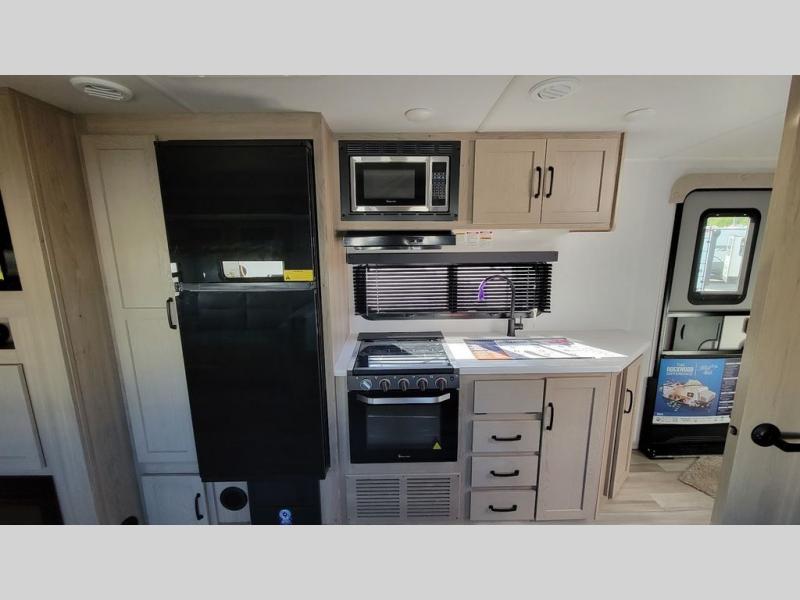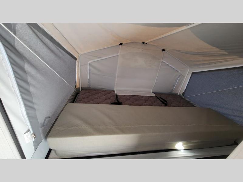 With any Rockwood Roo expandable travel trailer by Forest River you will enjoy smooth towing thanks to the torsion axle, Rubber-Ryde suspension, the easy lube axles and Nev-R-Adjust brakes. The key-Alike locks provide easy access in and out of your trailer, and each model includes prep for a Air 360+Omnidirectional antenna with WiFi for all your connection needs. Each model is constructed with a vacuum laminated one-piece roof and walls, an enclosed underbelly, and frameless windows for a more sleek look. You will enjoy many interior comforts, including hardwood cabinet doors and drawer fronts, night roller shades, a bunk/fan light combo with each bed, and much more!