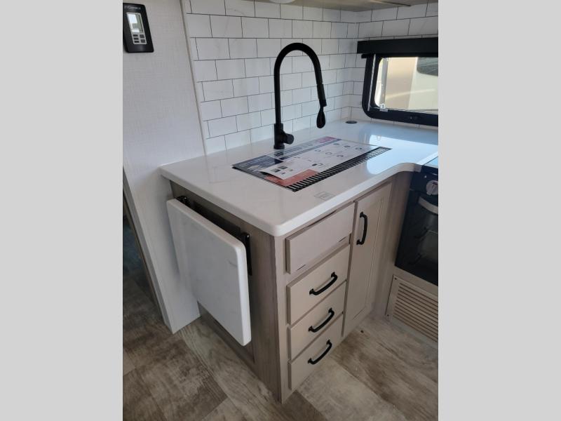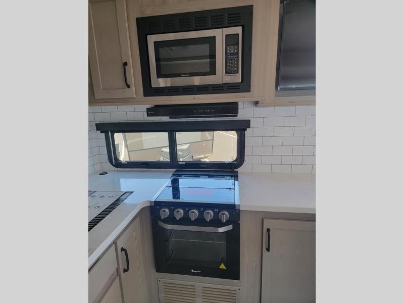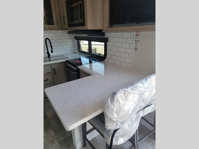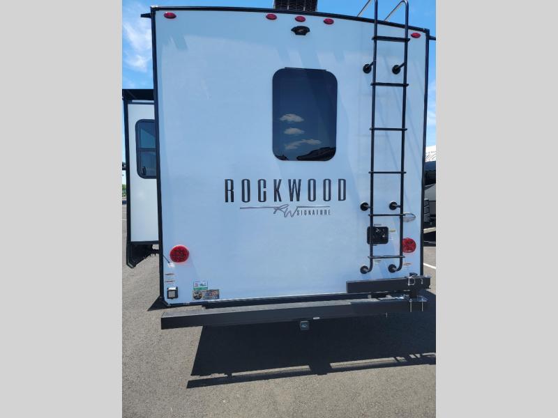 With any Rockwood Signature fifth wheel or travel trailer by Forest River RV, you will enjoy superior construction that includes laminated white fiberglass sidewalls, a radius roof with vaulted interior ceilings, plus radiant foil insulation and an enclosed underbelly for use in all types of weather. Some convenient exterior features include a power tongue jack, a torsion axle, Rubber-Ryde suspension, and a tire pressure monitor system with a monitor for added safety. The interior offers a One Touch OneControl panel with WeRV app control, for lights, awning, slides, water heater and more, and the Air 360+ omnidirectional antenna with WiFi prep lets you work while away from home if needed. You will also appreciate the interior vaulted ceilings, residential soft close doors and drawers, solid surface kitchen countertops, and designer kitchen backsplash!