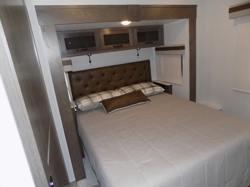 The perfect small family coach with a private bedroom and hallway bunks for the little ones directly opposite a spacious bath is not only practical but convenient. You will love this Signature model with front kitchen including countertop seating for two, plus all of the amenities you need to make meals while you are camped. You will also love the outside griddle tucked under the 21' awning for morning pancakes or to fry up your bacon to keep the strong smell outside. Relax on 67" theater seats with a TV opposite just to the right of the entry door. At night, head to the private bedroom with space saving sliding door for a great night's sleep on the queen bed, and keep all of your clothing neatly tucked away in the wardrobe/linen closet opposite, both are found within a slide creating added floor space for moving around. The many exterior storage spaces allow you to take along all that you might need without worrying about enough room.