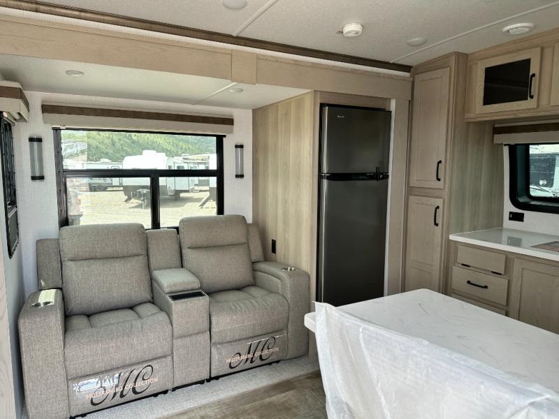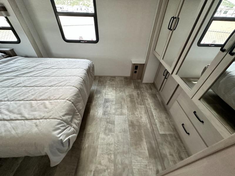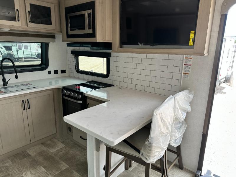 With any Rockwood Signature fifth wheel or travel trailer by Forest River RV, you will enjoy superior construction that includes laminated white fiberglass sidewalls, a radius roof with vaulted interior ceilings, plus radiant foil insulation and an enclosed underbelly for use in all types of weather. Some convenient exterior features include a power tongue jack, a torsion axle, Rubber-Ryde suspension, and a tire pressure monitor system with a monitor for added safety. The interior offers a One Touch OneControl panel with WeRV app control, for lights, awning, slides, water heater and more, and the Air 360+ omnidirectional antenna with WiFi prep lets you work while away from home if needed. You will also appreciate the interior vaulted ceilings, residential soft close doors and drawers, solid surface kitchen countertops, and designer kitchen backsplash!