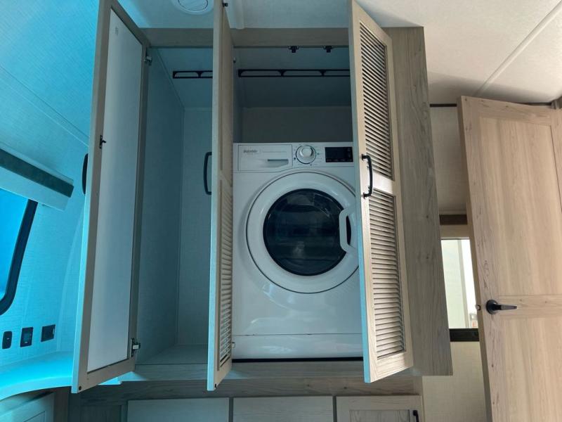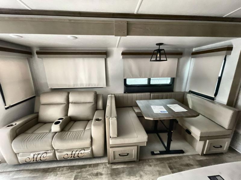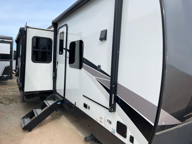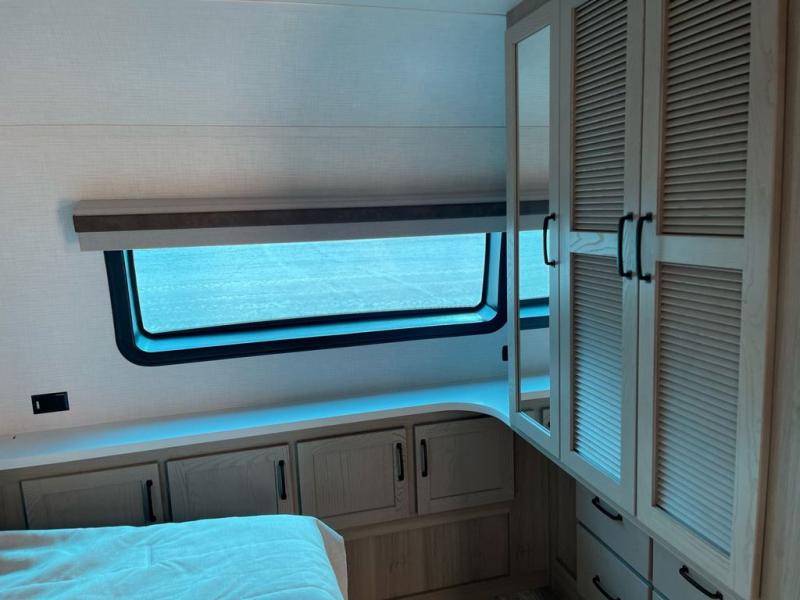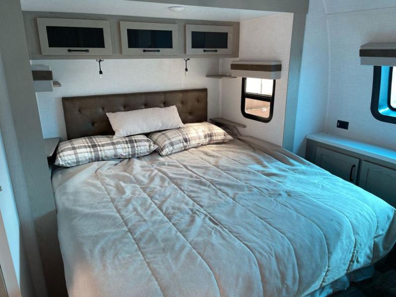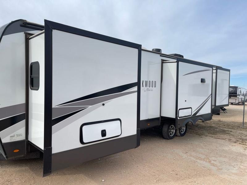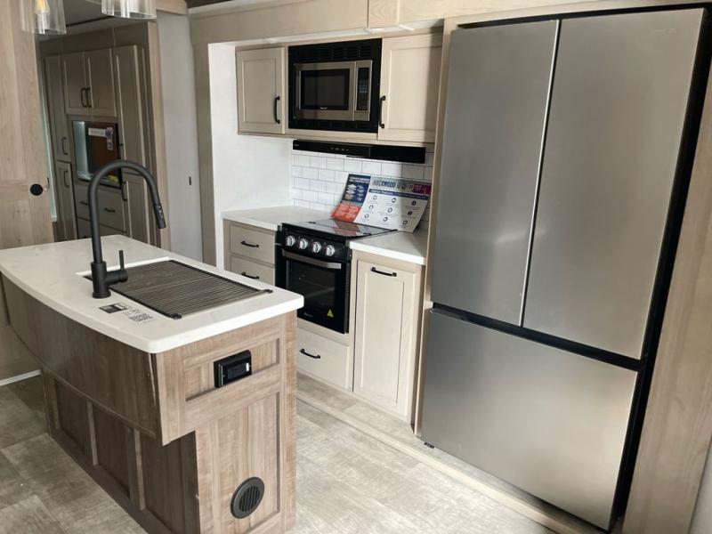 With any Rockwood Signature fifth wheel or travel trailer by Forest River RV, you will enjoy superior construction that includes laminated white fiberglass sidewalls, a radius roof with vaulted interior ceilings, plus radiant foil insulation and an enclosed underbelly for use in all types of weather. Some convenient exterior features include a power tongue jack, a torsion axle, Rubber-Ryde suspension, and a tire pressure monitor system with a monitor for added safety. The interior offers a One Touch OneControl panel with WeRV app control, for lights, awning, slides, water heater and more, and the Air 360+ omnidirectional antenna with WiFi prep lets you work while away from home if needed. You will also appreciate the interior vaulted ceilings, residential soft close doors and drawers, solid surface kitchen countertops, and designer kitchen backsplash!