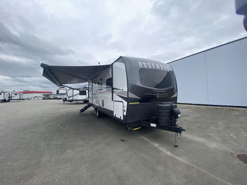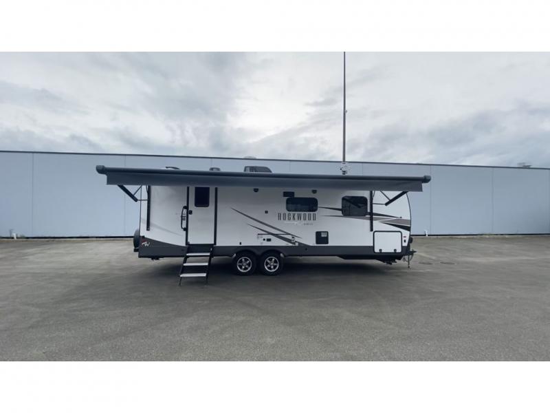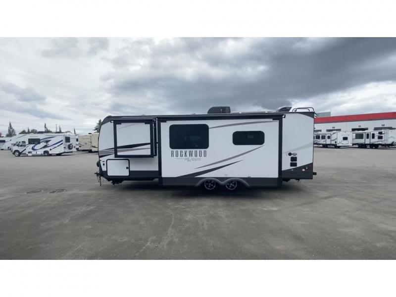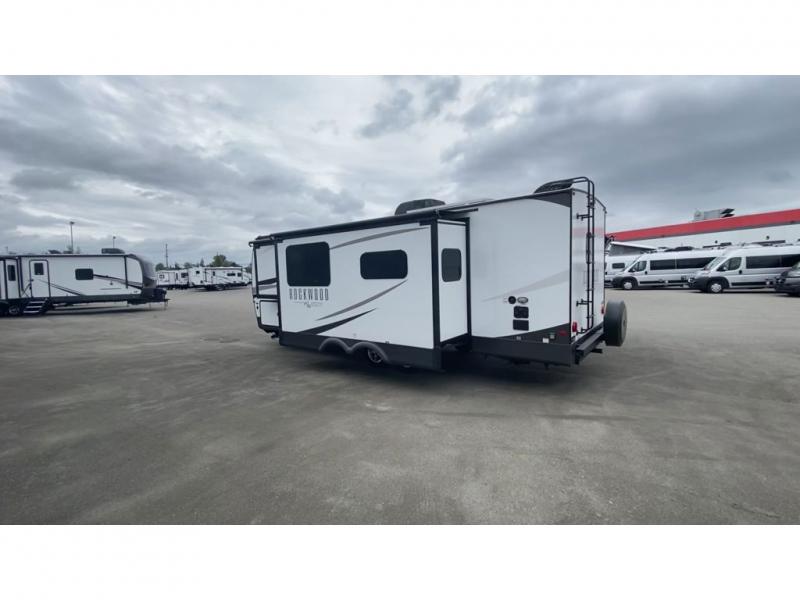 Each Rockwood Ultra Lite travel trailer by Forest River includes superior construction with a high gloss front cap, laminated white fiberglass sidewalls, and tinted frameless windows for a sleek look. You will love how easy it will be to charge a few electronics with the 200W roof solar panel with an 1800W inverter, and the AIR 360+ omnidirectional antenna with WiFi prep will let you stay connected to the outside world as you camp. The torsion axle, Rubber-Ryde suspension will make towing smooth and hassle-free, along with the nitrogen filled, Goodyear Endurance tires and the tire pressure monitor system. Interior comforts include designer kitchen backsplash, solid wood cabinet doors with hidden hinges, and night roller shades to name a few. Choose a Rockwood Ultra Lite travel trailer today!