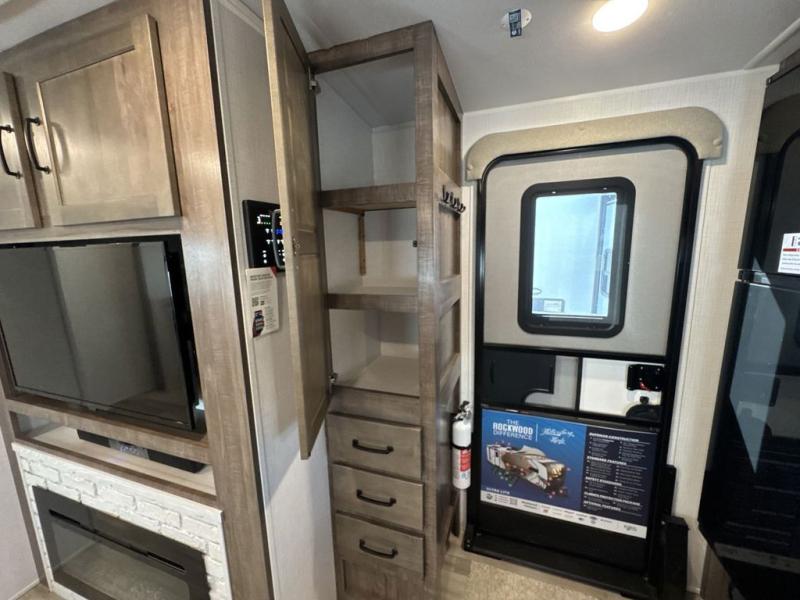 Each Rockwood Ultra Lite travel trailer by Forest River includes superior construction with a high gloss front cap, laminated white fiberglass sidewalls, and tinted frameless windows for a sleek look. You will love how easy it will be to charge a few electronics with the 200W roof solar panel with an 1800W inverter, and the AIR 360+ omnidirectional antenna with WiFi prep will let you stay connected to the outside world as you camp. The torsion axle, Rubber-Ryde suspension will make towing smooth and hassle-free, along with the nitrogen filled, Goodyear Endurance tires and the tire pressure monitor system. Interior comforts include designer kitchen backsplash, solid wood cabinet doors with hidden hinges, and night roller shades to name a few. Choose a Rockwood Ultra Lite travel trailer today!