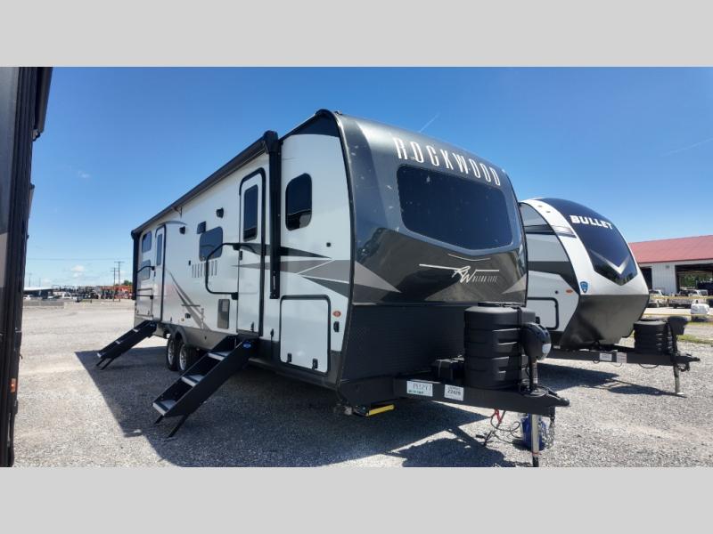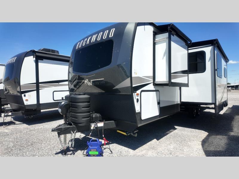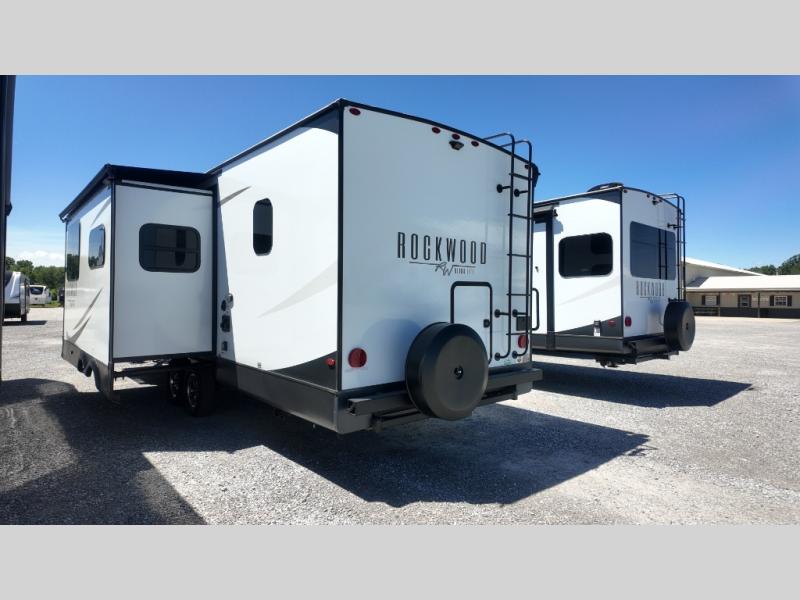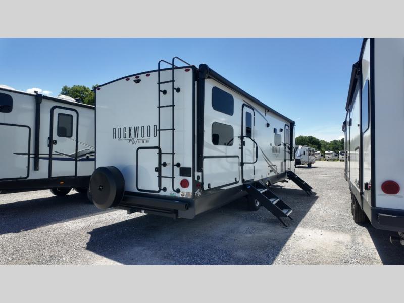 Each Rockwood Ultra Lite travel trailer by Forest River includes superior construction with a high gloss front cap, laminated white fiberglass sidewalls, and tinted frameless windows for a sleek look. You will love how easy it will be to charge a few electronics with the 200W roof solar panel with an 1800W inverter, and the AIR 360+ omnidirectional antenna with WiFi prep will let you stay connected to the outside world as you camp. The torsion axle, Rubber-Ryde suspension will make towing smooth and hassle-free, along with the nitrogen filled, Goodyear Endurance tires and the tire pressure monitor system. Interior comforts include designer kitchen backsplash, solid wood cabinet doors with hidden hinges, and night roller shades to name a few. Choose a Rockwood Ultra Lite travel trailer today!