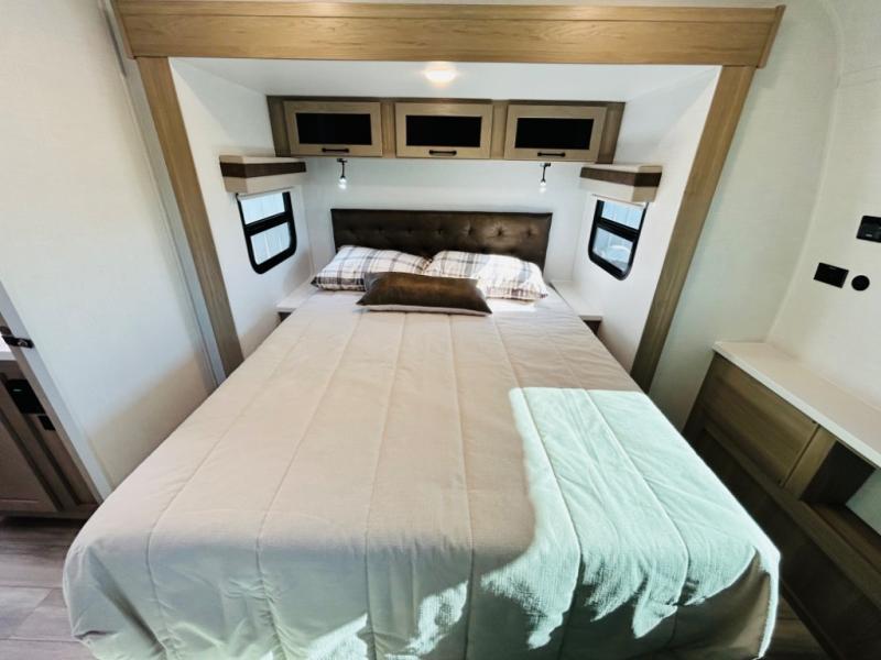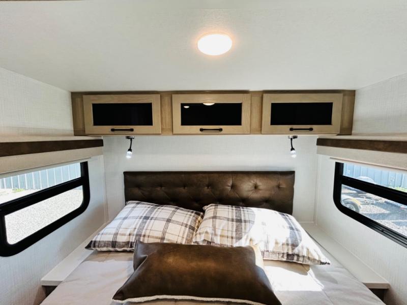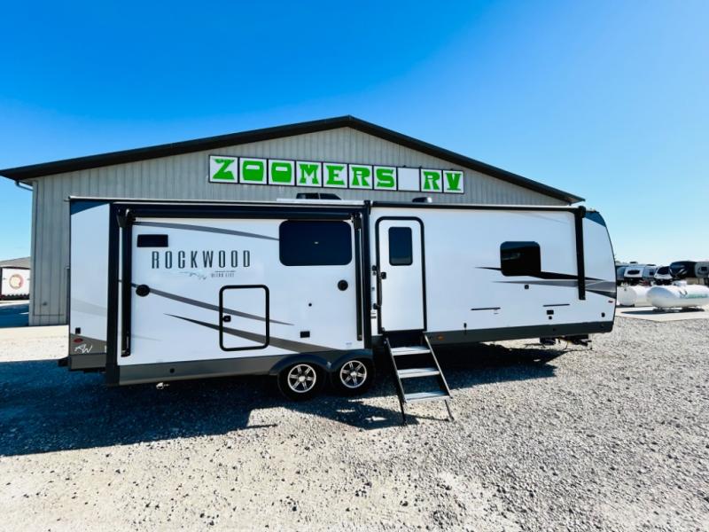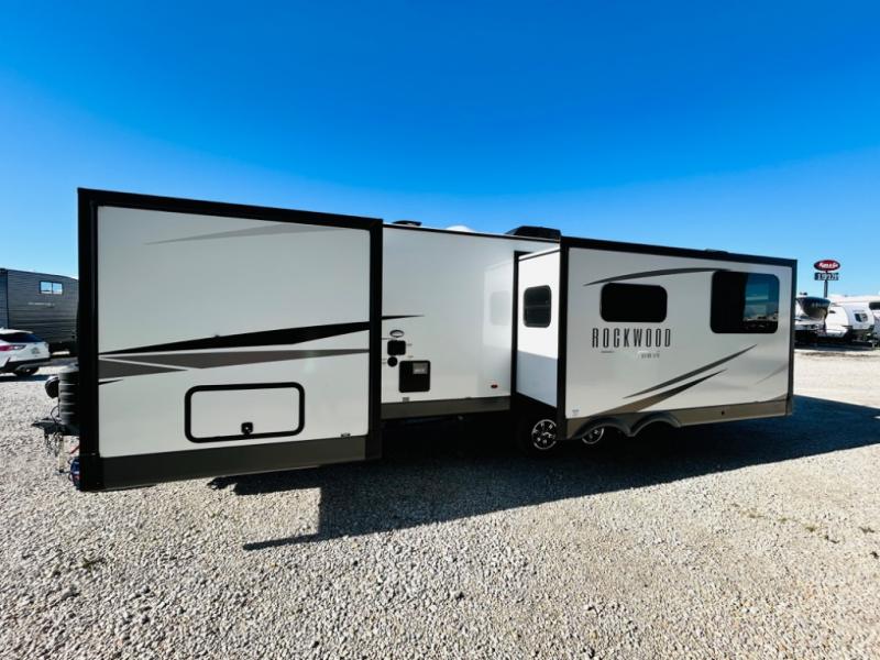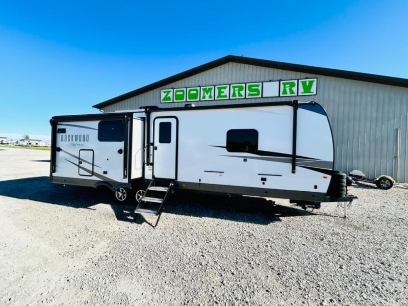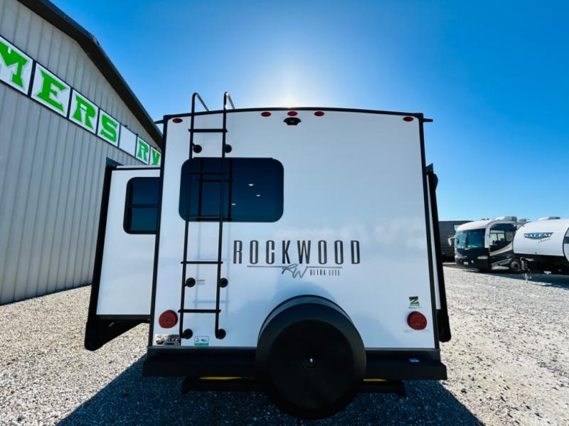 Each Rockwood Ultra Lite travel trailer by Forest River includes superior construction with a high gloss front cap, laminated white fiberglass sidewalls, and tinted frameless windows for a sleek look. You will love how easy it will be to charge a few electronics with the 200W roof solar panel with an 1800W inverter, and the AIR 360+ omnidirectional antenna with WiFi prep will let you stay connected to the outside world as you camp. The torsion axle, Rubber-Ryde suspension will make towing smooth and hassle-free, along with the nitrogen filled, Goodyear Endurance tires and the tire pressure monitor system. Interior comforts include designer kitchen backsplash, solid wood cabinet doors with hidden hinges, and night roller shades to name a few. Choose a Rockwood Ultra Lite travel trailer today!