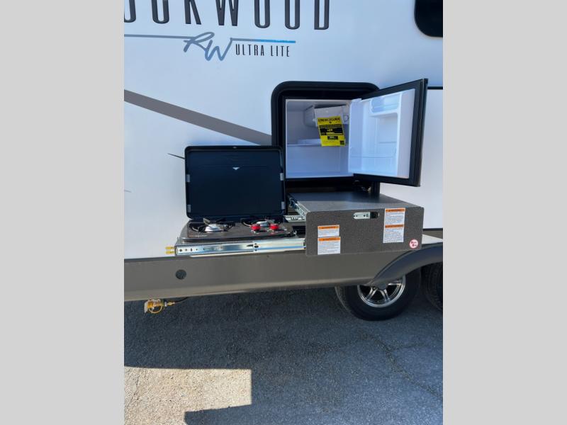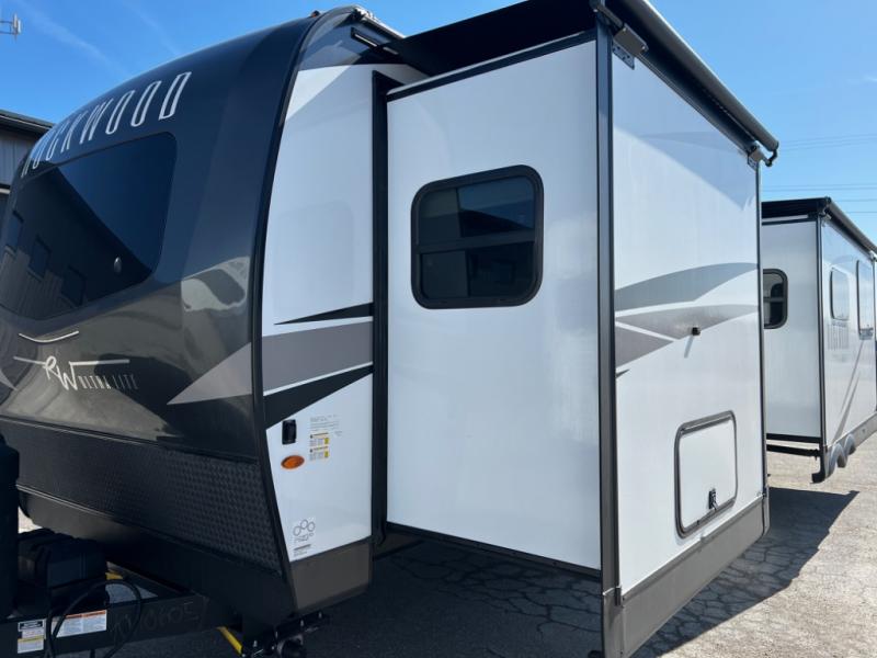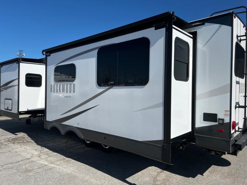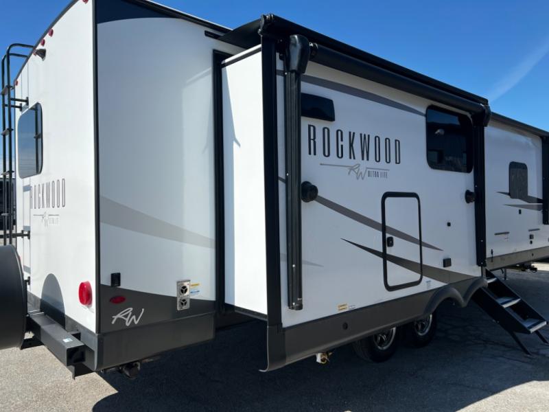 Each Rockwood Ultra Lite travel trailer by Forest River includes superior construction with a high gloss front cap, laminated white fiberglass sidewalls, and tinted frameless windows for a sleek look. You will love how easy it will be to charge a few electronics with the 200W roof solar panel with an 1800W inverter, and the AIR 360+ omnidirectional antenna with WiFi prep will let you stay connected to the outside world as you camp. The torsion axle, Rubber-Ryde suspension will make towing smooth and hassle-free, along with the nitrogen filled, Goodyear Endurance tires and the tire pressure monitor system. Interior comforts include designer kitchen backsplash, solid wood cabinet doors with hidden hinges, and night roller shades to name a few. Choose a Rockwood Ultra Lite travel trailer today!