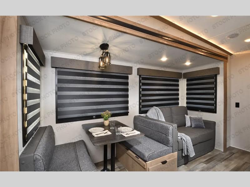 You will experience luxurious camping trips at an affordable price with any one of these Forest River Sabre fifth wheels! These models are durable and ready to travel anytime of the year thanks to features like the high-gloss gel-coat front cap with LED lighting, the PVC roof membrane, and the forced air underbelly with enclosed gate valves. The electric auto-leveling system makes setting up easy and safe, and the adjustable power awning with LED lighting will create an inviting outdoor living space. Each model includes a universal docking station which includes a black tank flush and an outside shower, and detachable and adjustable stable steps for you to enter and exit the unit safely. Inside, you will love the design of the ambient accent lighting above the crown molding in the living area, the real wood lumbercore cabinetry, and the vintage gaslight decorative lighting!