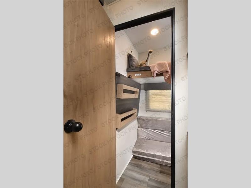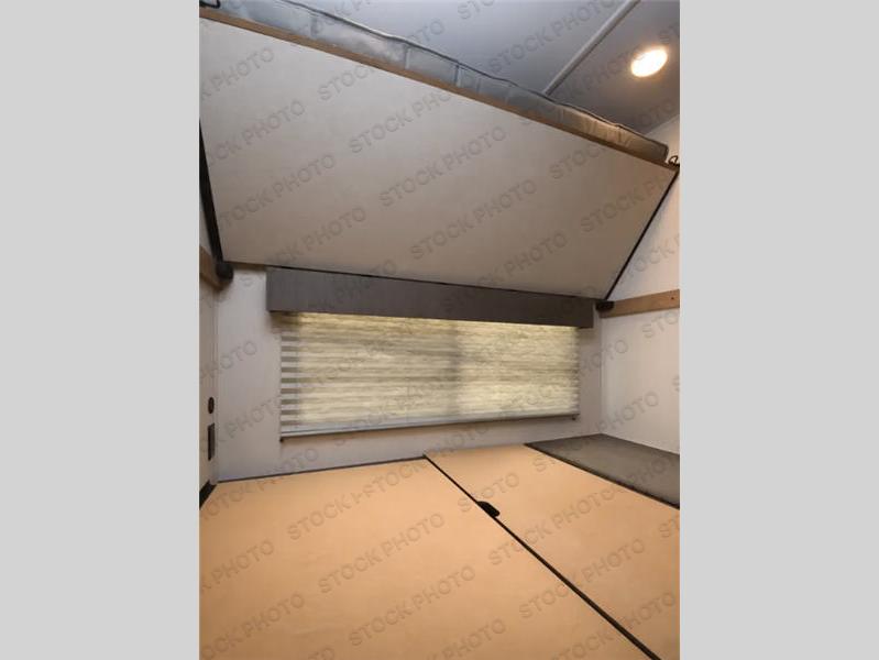 A family of six will enjoy every adventure in this Sabre hide-away bunk model! In the very back of the unit, a hidden bunk room with sleeping for two and there is even a desk and storage space for your things. The combined kitchen and living area features a large slide that houses a tri-fold sofa and booth dinette with drawers for storage opposite the kitchen appliances where you can easily prepare all of your meals while away from home. There is shoe storage at the steps leading up into the main bath and front private master bedroom. The bathroom features a spacious shower with seat and includes a skylight, a vanity, toilet, and linen cabinet. The master bedroom with queen bed and dual nightstands and wardrobes will keep all of your clothing and belongings neat and organized. There is even a CPAP shelf if you need to bring one along for sleeping. Outside, a nice pass-through storage compartment for your camp chairs and outdoor gear, plus a 12' awning to provide added living space outside that your family is sure to enjoy.