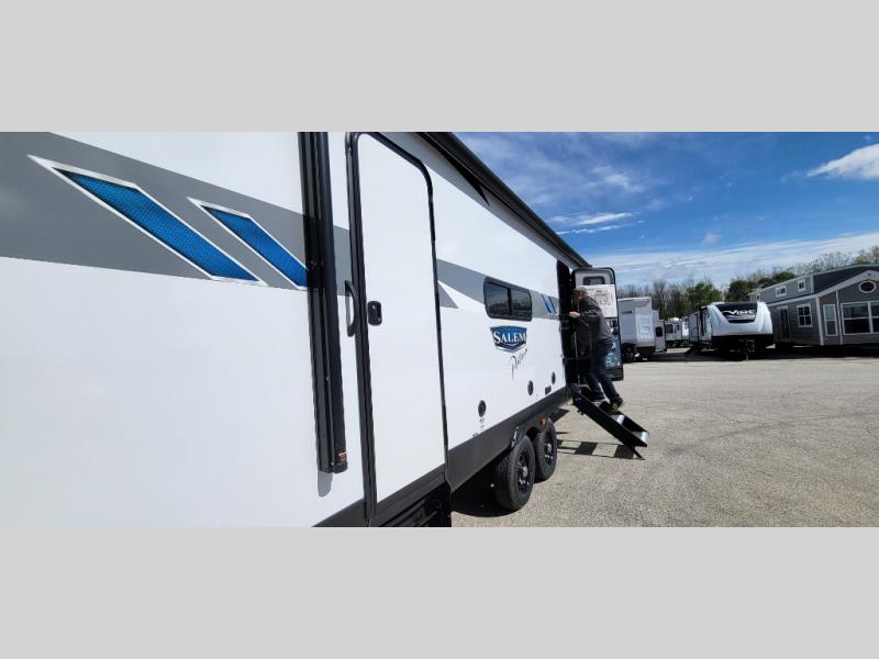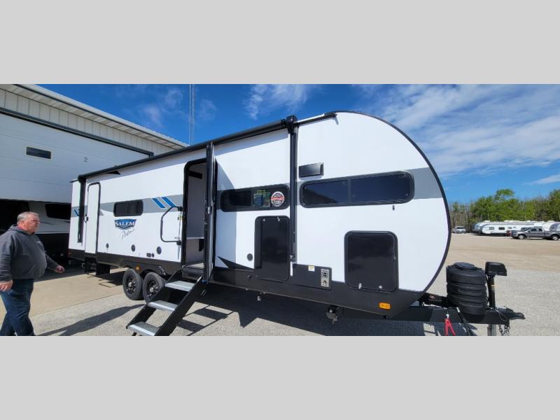 Enjoy years and years of memories with any one of these Forest River Salem travel trailers! They are built with a Dicor PVC roof membrane, a powder coated I-beam frame, and an aerodynamic front radius profile for an easier tow. The triple seal slide out system prevents water from seeping inside and keeps it outside where it belongs. The Best In Class Value Package includes upgraded designer furniture, seamless countertops with no T-mold, and two zone residential soundbars with FM, Bluetooth, HDMI and USB. You will also appreciate the heated and enclosed Accessi-Belly with removable underbelly panels, the power tongue jack with an LED light, and the designated CPAP storage. Some new upgraded features include: a Versa-Tilt bed, a 60K tankless water heater, upgraded showerhead, and so much more!