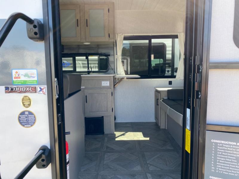 With less than 4,000 lbs. of weight and an aerodynamic front radius profile, you can be sure this travel trailer will tow with ease! The full rear bathroom has a radius walk-in shower to start your mornings off clean and fresh, and there is a closet to keep your towels and other accessories close by too. Up front there is an Easy Bed lift system to increase your living space by providing a queen bed to sleep on at night and a Jiffy sofa to sit on during the day. You can whip up a delicious meal with the three burner cooktop and oven then head to the booth dinette to enjoy your meals!