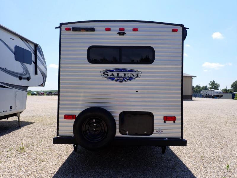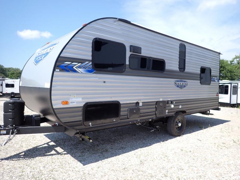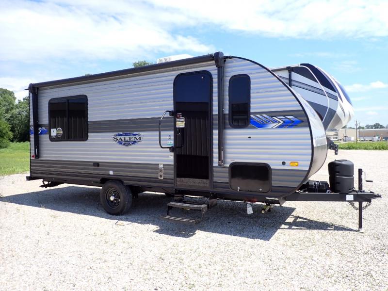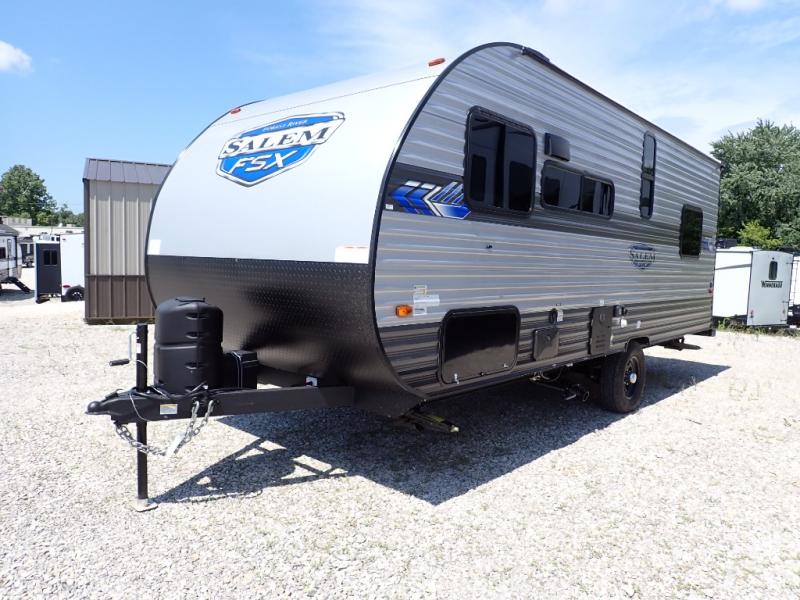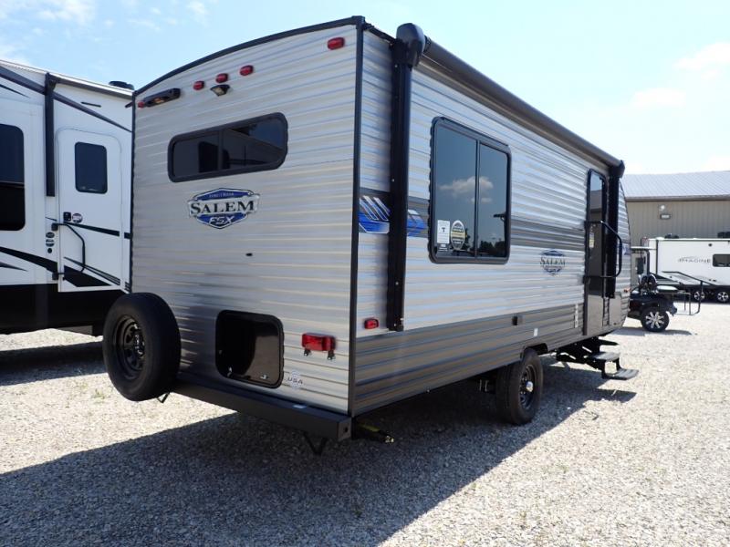 The Forest River Salem FSX travel trailers and toy hauler travel trailers are ultra comfortable and lightweight, perfect for first time or seasoned campers alike! You will love how easy it will be to relax with residential features that will make your space feel just like home, and the durable construction means you can enjoy your RV for years to come. There are a wide variety of floorplans to choose from, including couple's trailers, bunk models, and toy haulers, all with full bath and kitchen amenities and plenty of storage for all your gear!