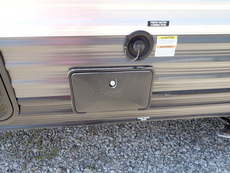 You will love this cozy travel trailer for all your camping needs! There is a front U-shaped dinette that will convert to a queen-sized bed at night, and the rear master bedroom includes a queen bed as well! The split style bath will be easily accessible for everyone, and there is plenty of storage space for all your gear, both inside and out! The kitchen comes with a two burner cooktop and microwave oven, plus a dual swinging 12V refrigerator for food storage. There is also a high capacity axle for easy towing, and dual Group 24 battery trays for extended camping power!