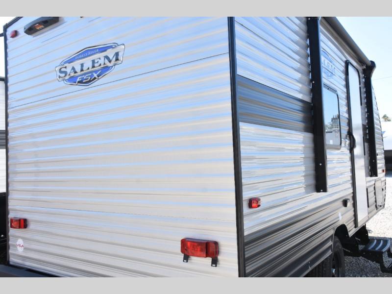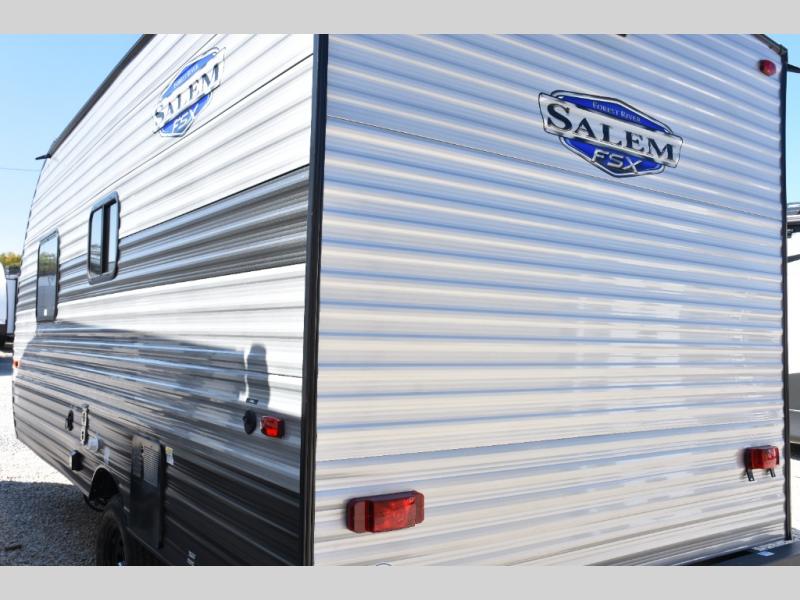 The Forest River Salem FSX travel trailers and toy hauler travel trailers are ultra comfortable and lightweight, perfect for first time or seasoned campers alike! You will love how easy it will be to relax with residential features that will make your space feel just like home, and the durable construction means you can enjoy your RV for years to come. There are a wide variety of floorplans to choose from, including couple's trailers, bunk models, and toy haulers, all with full bath and kitchen amenities and plenty of storage for all your gear!